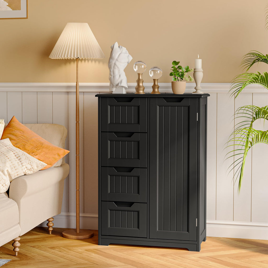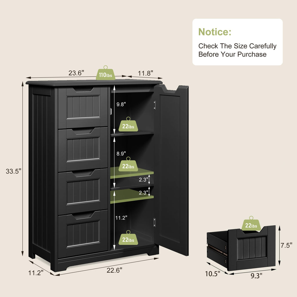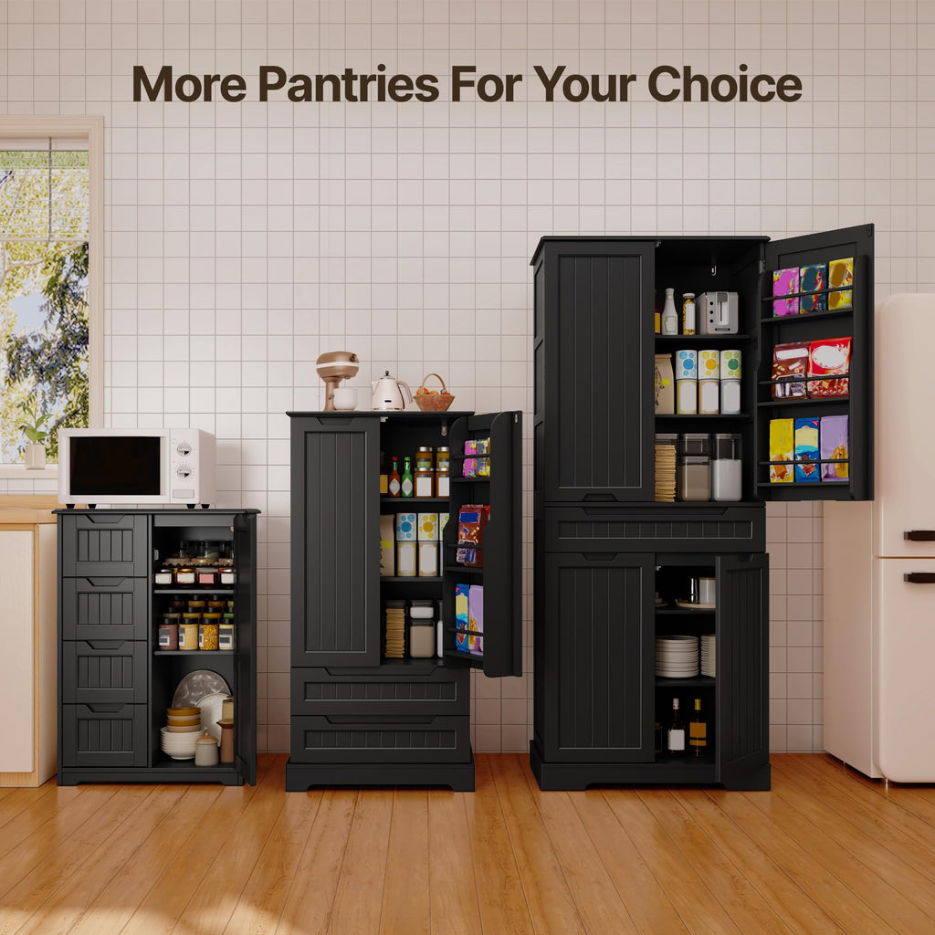 Aiho 33.5" H Kitchen Pantry Storage Cabinet with 1 Door & 3 Drawers & 3 Adjustable Shelves, Modern Kitchen Storage Cabinets for Living Room, Dining Room, Black