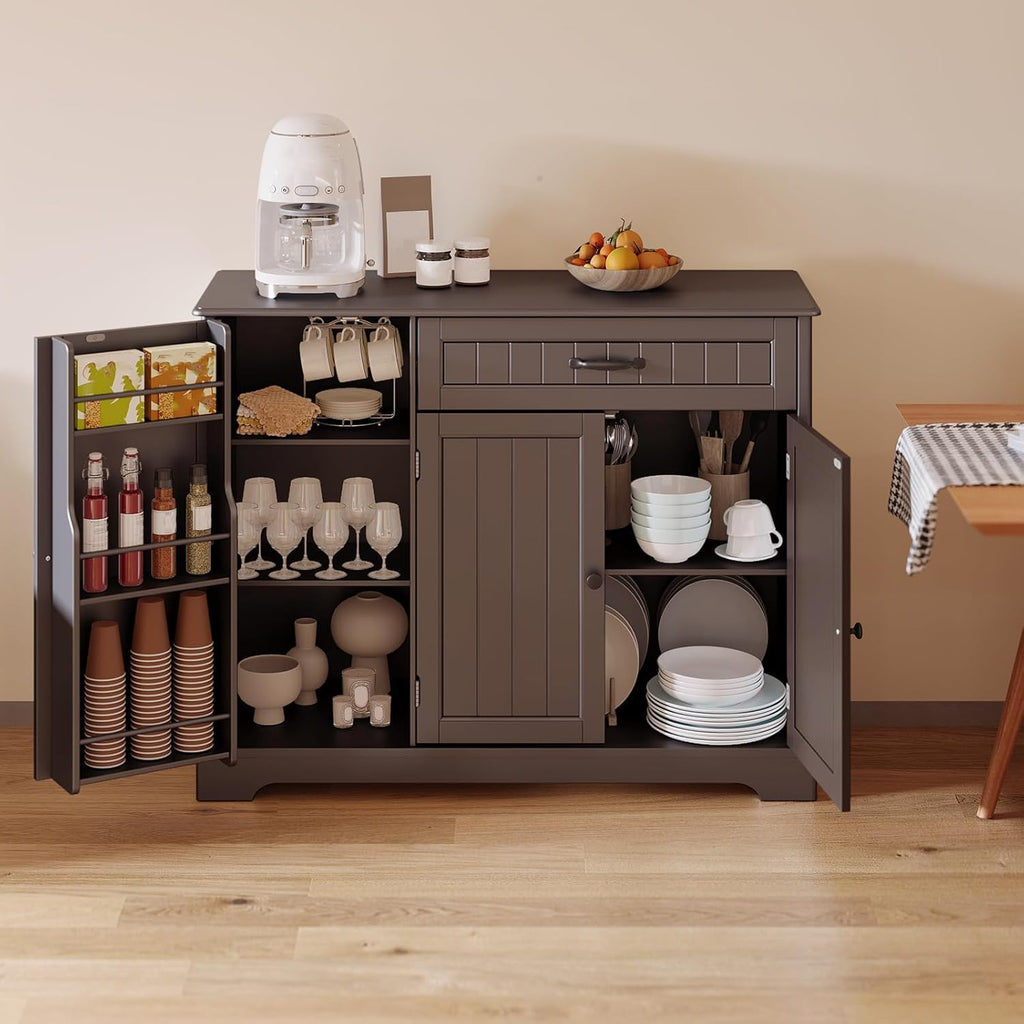 Aiho 43.3" L Buffet Cabinet with Storage, Coffee Bar Cabinet with Drawer & Doors & Shelves for Kichen, Bathroom, Livingroom, Dark Brown