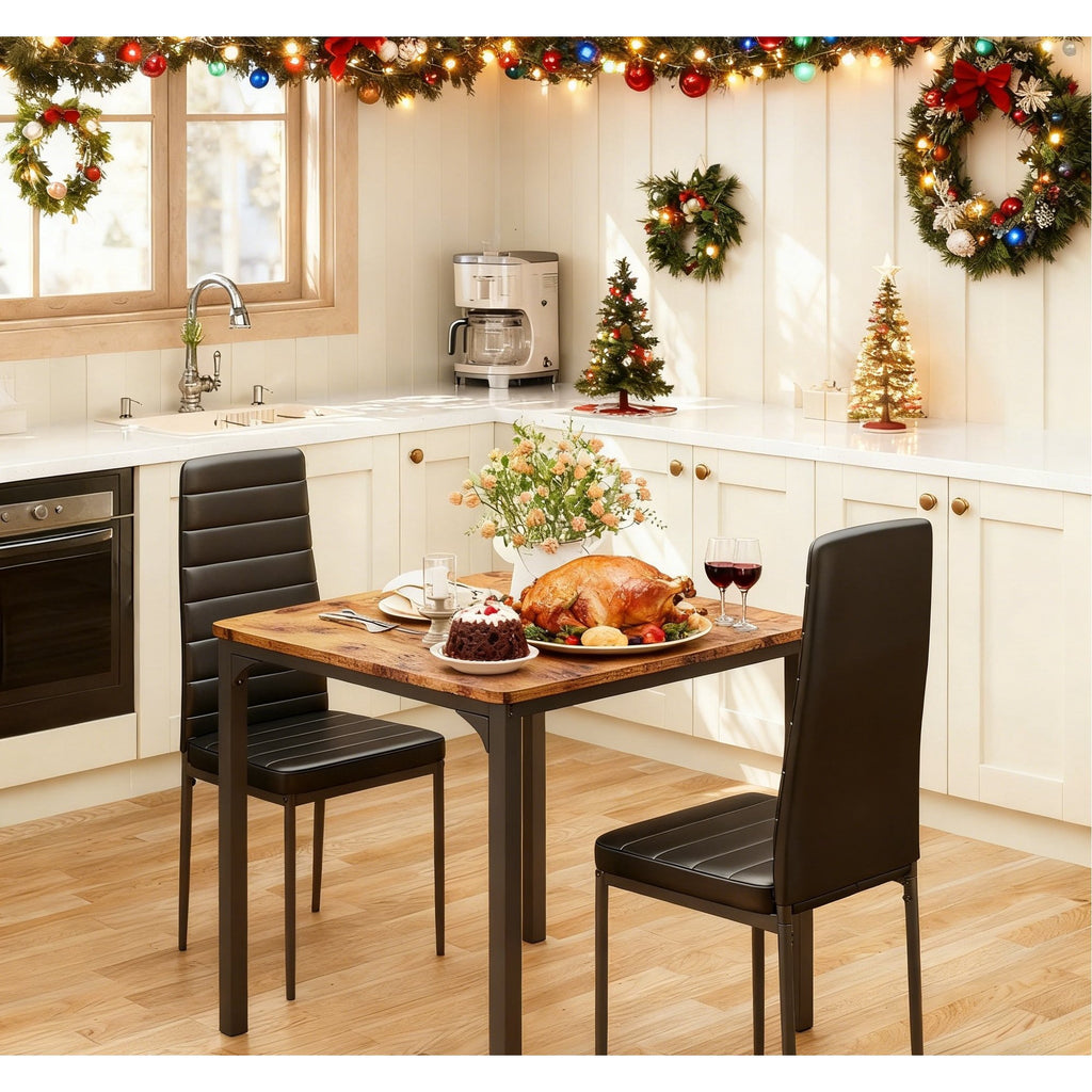 Asofer Christmas Gift 25" Dining Table and Chairs 2-Piece Set, 2-Person Dining Set with Wooden Tabletop, Ideal for Kitchen, Apartment, Small Spaces, Retro