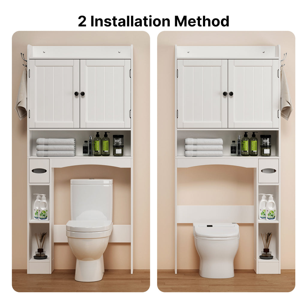 Designed for user-friendly installation, this Farmhouse Storage Cabinet Over Toilet comes with all necessary parts and illustrated instructions. No extra tools are needed — assemble your over toilet bathroom organizer quickly and effortlessly.