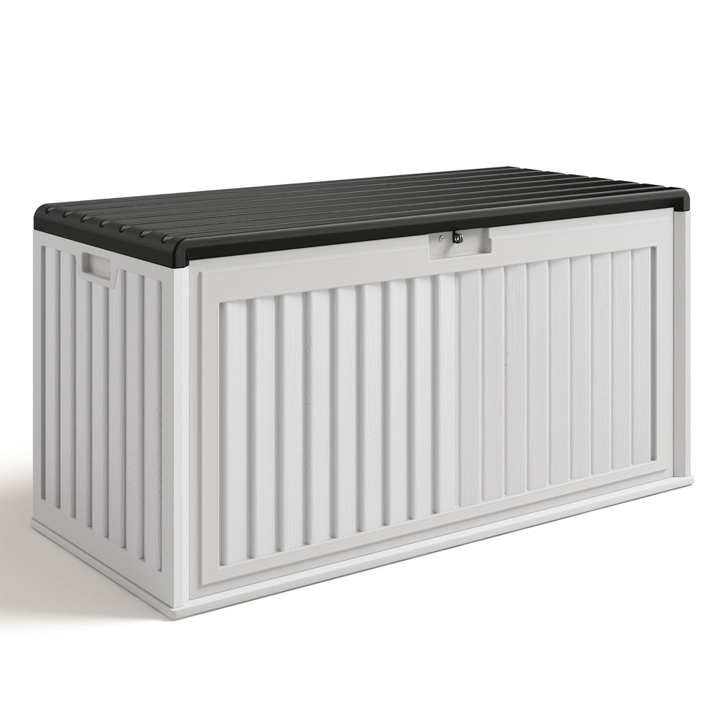 100 Gallon Resin Deck Box, Asofer Lockable Patio Outdoor Storage Box, Garden Tools Storage, White