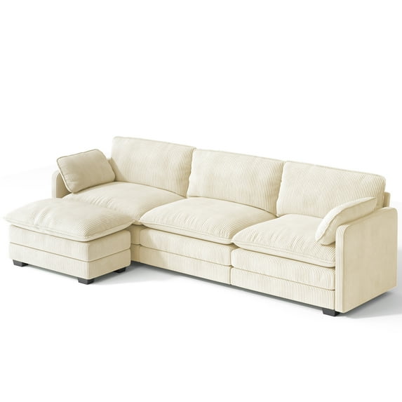 110.2" Cloud Couch, Lofka Sectional Couch with Ottoman, Upholstered Couches for Living Room Bedroom,Blue(Plush Corduroy Fabric)