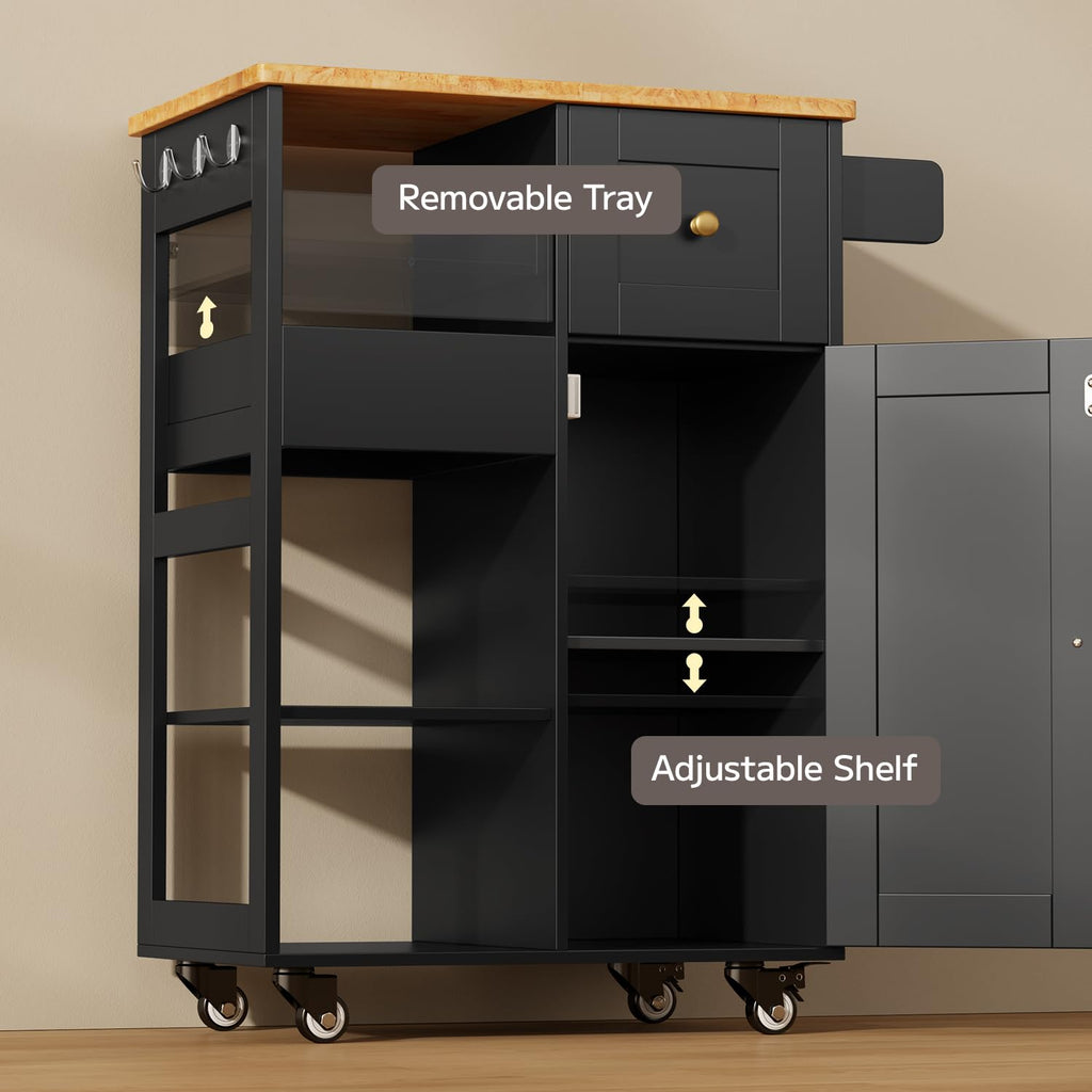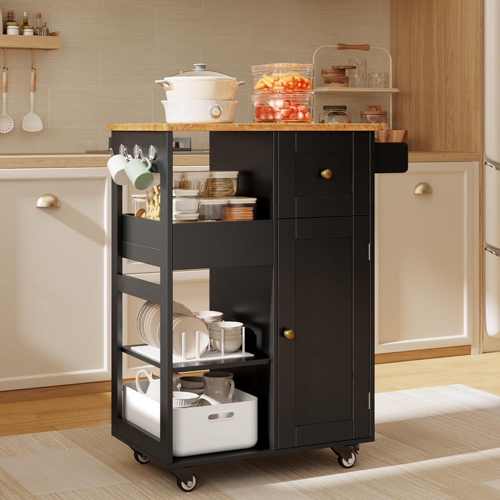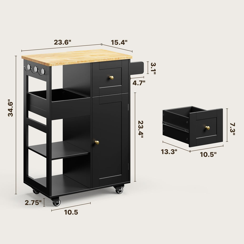 23.6" W Aiho Rolling Kitchen Island on Wheels with Spice Rack, Removeable Tray, Drawers, Island Table for Kitchen with Adjustable Shelves, For Kichen, Dining Room, Coffee Bar, Black