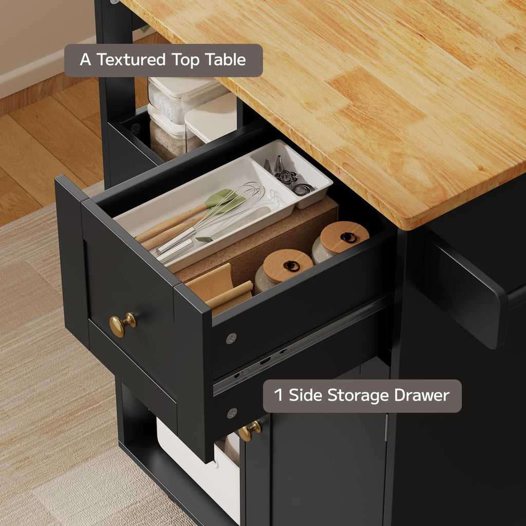 Meet your new kitchen bestie! The Aiho kitchen island with storage is not just a stylish addition to your home—it’s a functional powerhouse designed to simplify your life. Whether you're prepping meals using the spacious scratch-resistant top 🍳, hosting friends with easy access to drinks and snacks from the removable tray 🥂, or enjoying breakfast in the sun thanks to its smooth-gliding locking wheels ☀️, this kitchen island cart offers the perfect blend of elegance, mobility, and smart storage. With a waterproof surface that wipes clean in seconds, a handy side drawer for organization, and an adjustable shelf for custom storage, it’s time to elevate your space effortlessly!