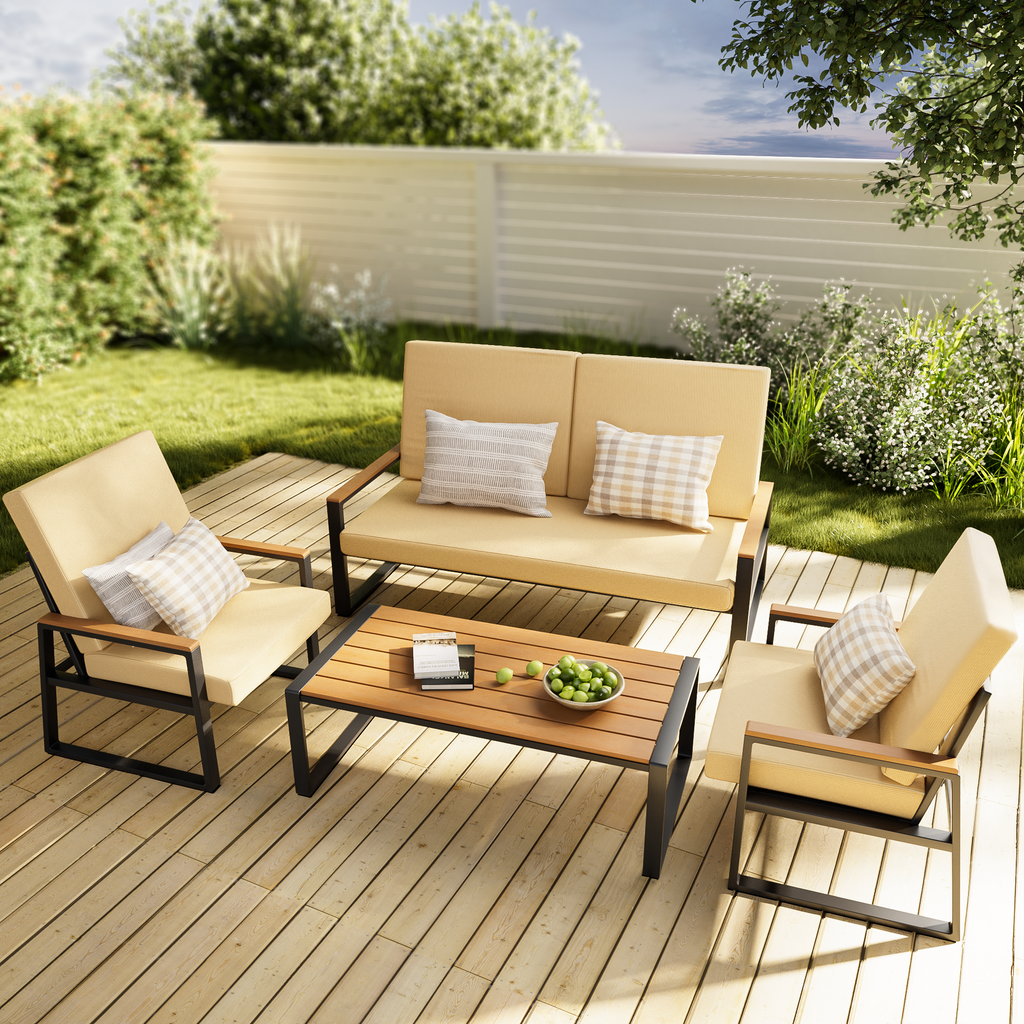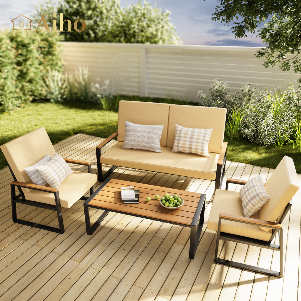 Aiho Outdoor Patio Furniture Set with Weather-Resistant Table, 4 piece patio furniture with Soft Cushion, For Backard, Poolside, Living Room, Patio, Porch, Garden and Balcony - Beige