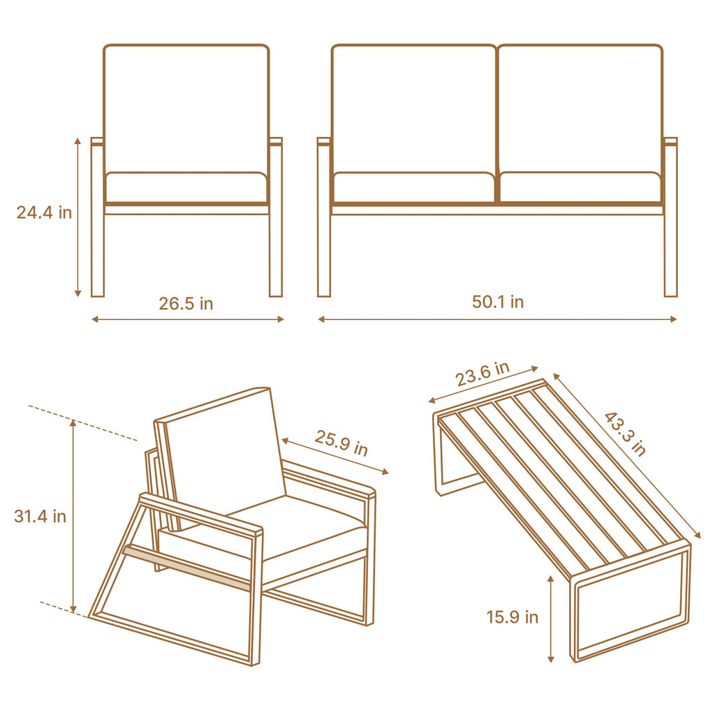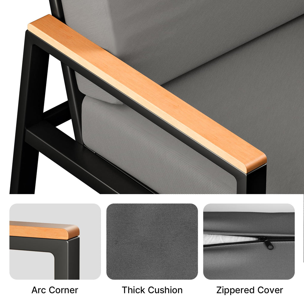 | Transform your living space, bring home comfort and style with our outdoor furniture - a perfect blend of durability, comfort, and modern style! Designed for lasting enjoyment, the balcony furniture includes a two-seater sofa, two single chairs, and a coffee table with a weatherproof WPC tabletop. Whether you're hosting friends or unwinding solo, this set offers superior support with thick high-resilience cushions and a powder-coated iron frame built to withstand the elements. Plus, the removable, easy-clean cushion covers make maintenance a breeze! Discover the full collection: Outdoor patio set Kindly refer to the following to find your perfect match: Patio conversation set |