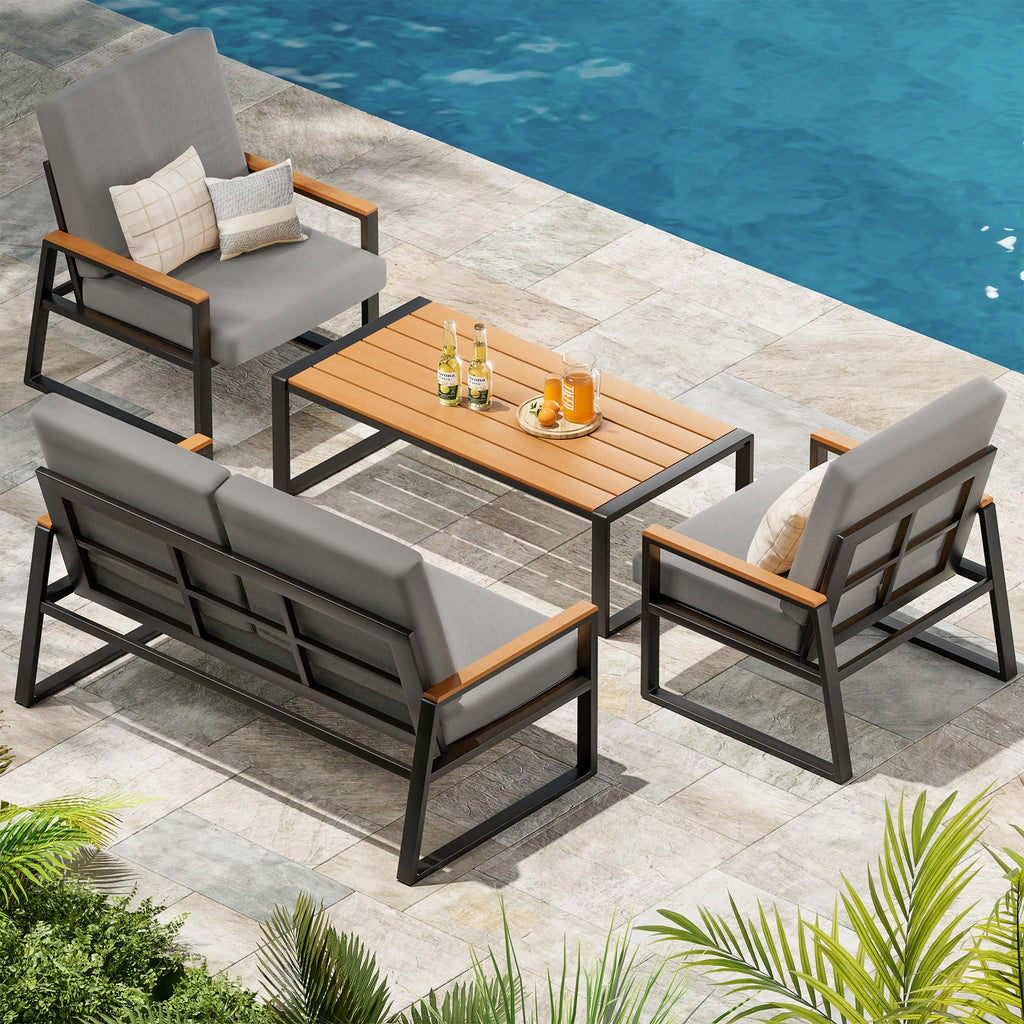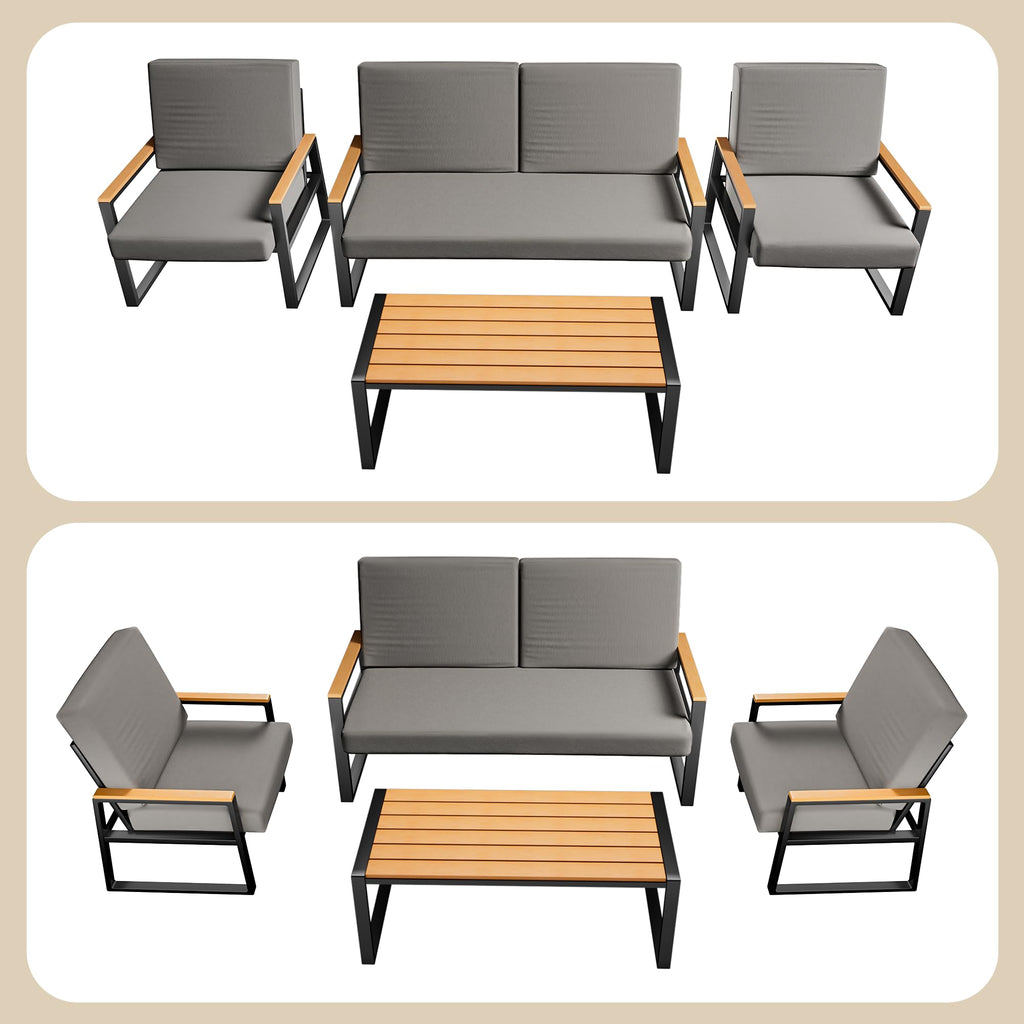 Aiho Outdoor Patio Furniture Set with Weather-Resistant Table, 4 Piece Patio Furniture with Soft Cushion, For Backyard, Poolside, Living Room, Patio, Porch, Garden and Balcony - Gray