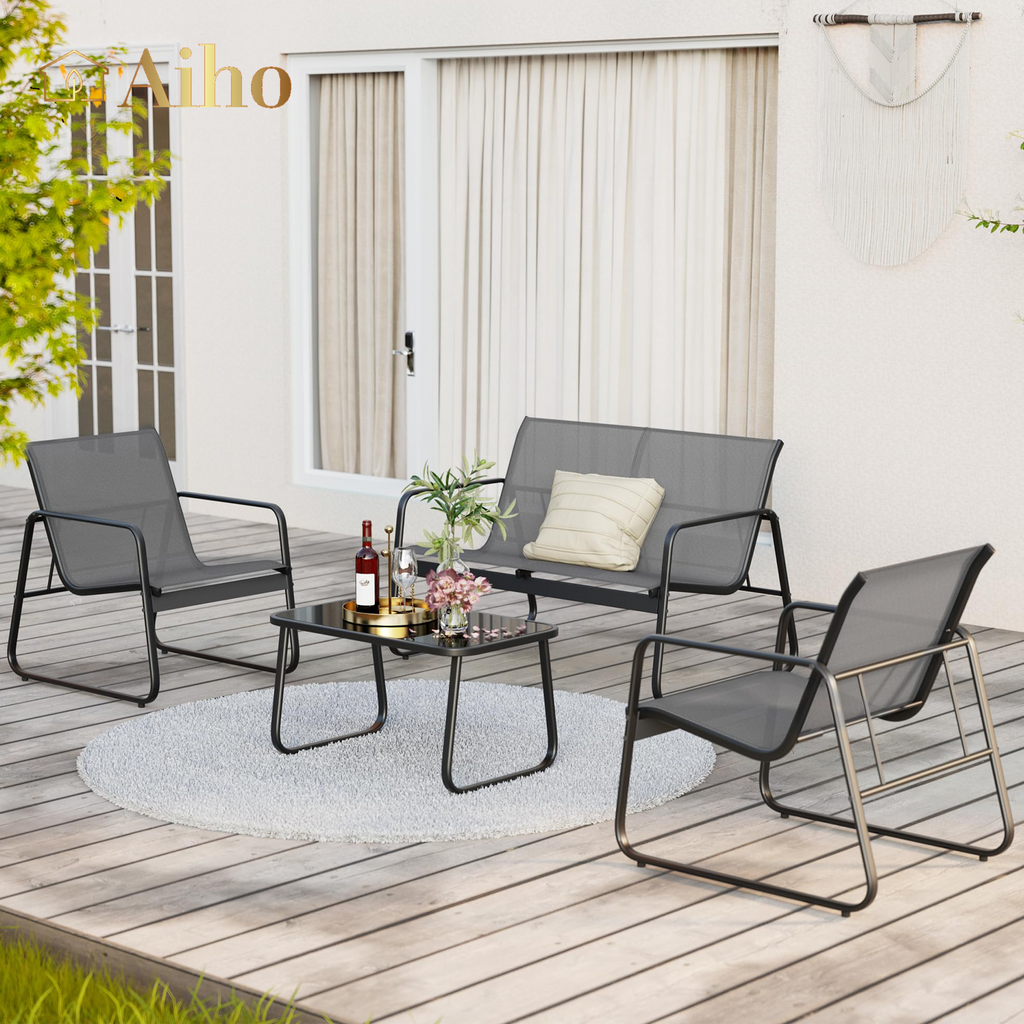 4 Pieces Patio Furniture Set,Textilene Modern Conversation Black Set with Tea Table for Home,Lawn,Balcony, Bistro - Gray
