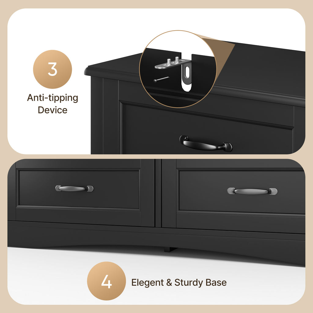 6 Drawer Dressers for Bedroom, Chest of Drawers with Deep Drawers, Large Double Dresser for Closet with Wide Top, Horizontal Wooden Dresser for Living Room, Hallway, Bedroom - Black
