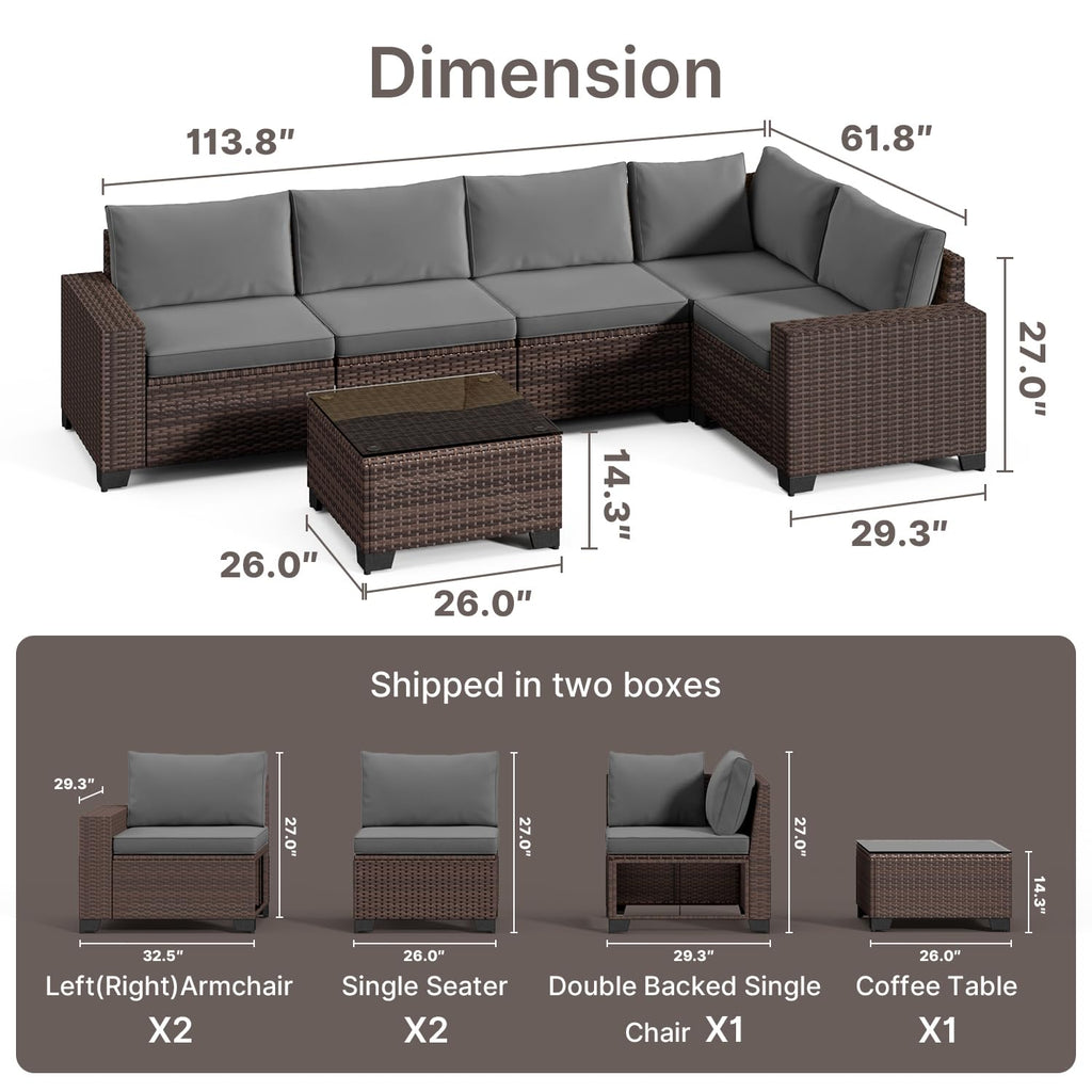 6-Piece Outdoor Patio Furniture Set, Pe Rattan Wicker Patio Sectional Conversation Sofa with Coffee Table for Garden, Backyard, Poolside, Lawn, Porch - Gray