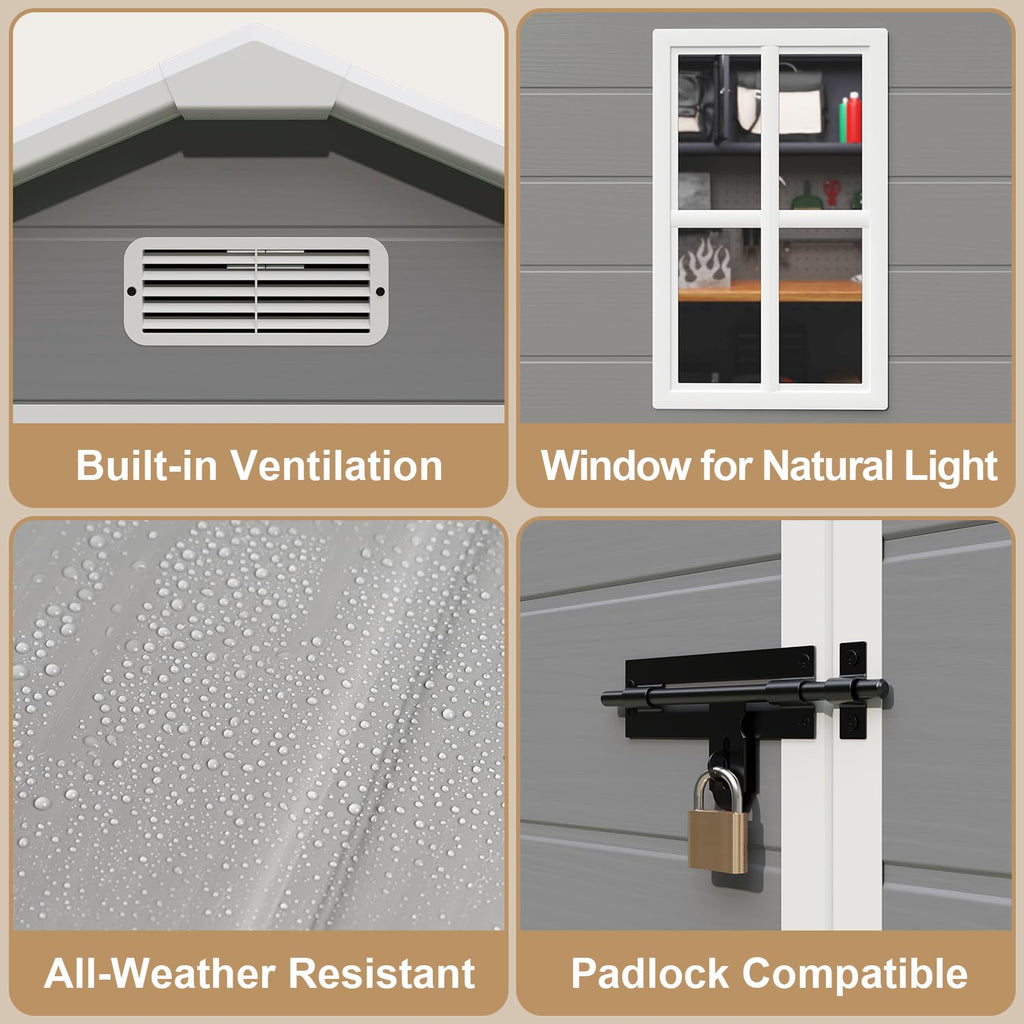 Aiho 6 X 4.4 Ft Outdoor Storage Shed, All Weather Resin Shed with Lockable Doors and Heavy Duty Floors, Perfect for Backyard, Garden, Gray