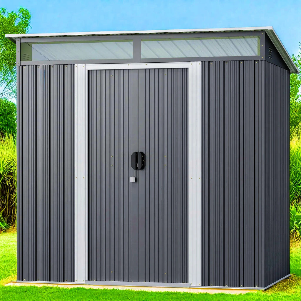 Lofka 6’x4’ Outdoor Storage Shed with Sliding Lockable Doors, Garden Metel Sheds for Backyard, Patio, Dark Gray