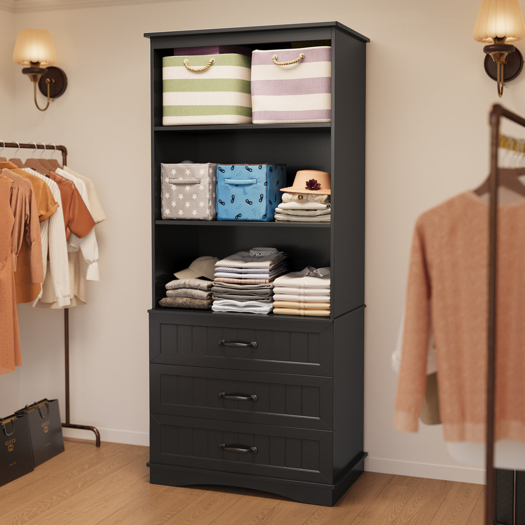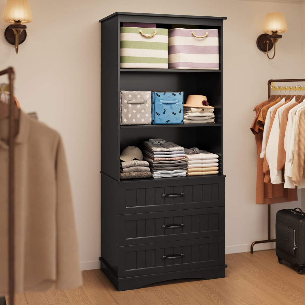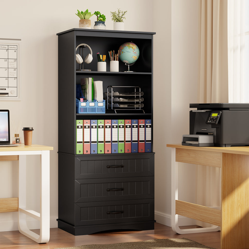 69.7"H Bookcase with 3 Drawer, Multifunctional Storage Cabinet Organizer for Office Living Room and Bedroom, Black