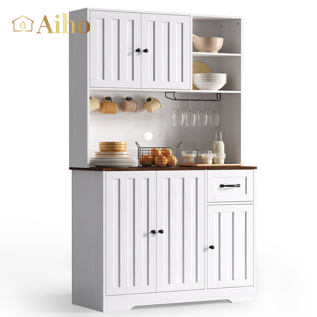 The Aiho 71” Farmhouse Kitchen Pantry Storage Cabinet is a modern coffee sideboard that perfectly blends rustic style with practical functionality. Featuring multiple doors and multiple shelves, the cabinet offers spacious storage space suitable for storing kitchenware, utensils, and microwaves. Its classic look makes it ideal for both dining rooms and kitchens, and is both practical and aesthetically pleasing, adding a cozy atmosphere to family meals.