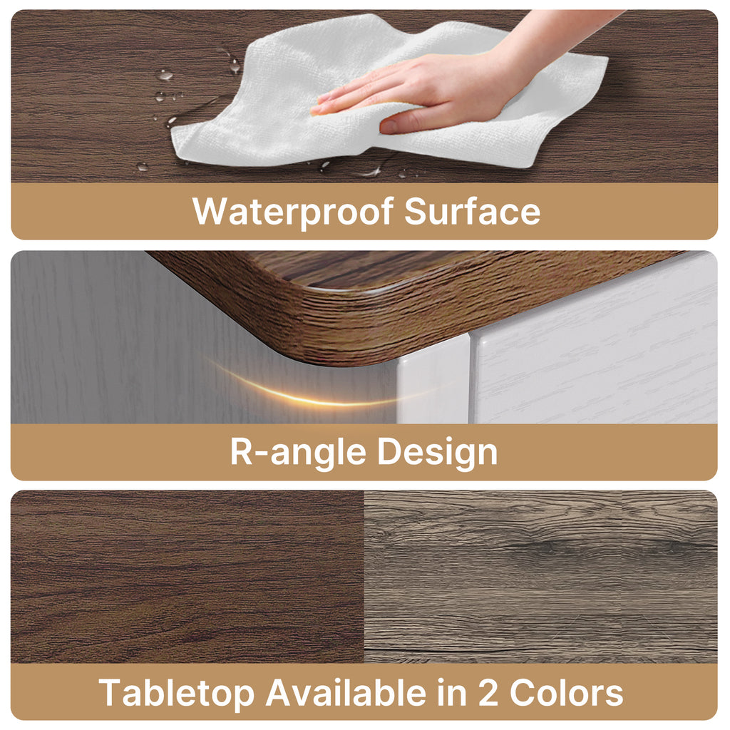 71" Farmhouse Kitchen Pantry Storage Cabinet, Modern Coffee Hutch with Doors, Shelves & Microwave Stand, Cupboard for Dining Room - White+Retro