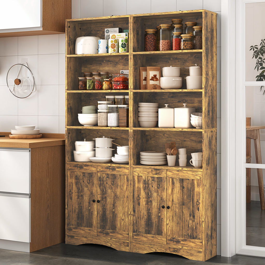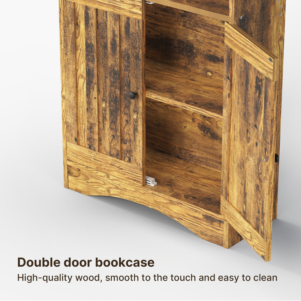 71" H Bookcase, 6-Shelf Bookcase with Adjustable Shelves & Doors for Home Office, Living Room, Bedroom - Retro