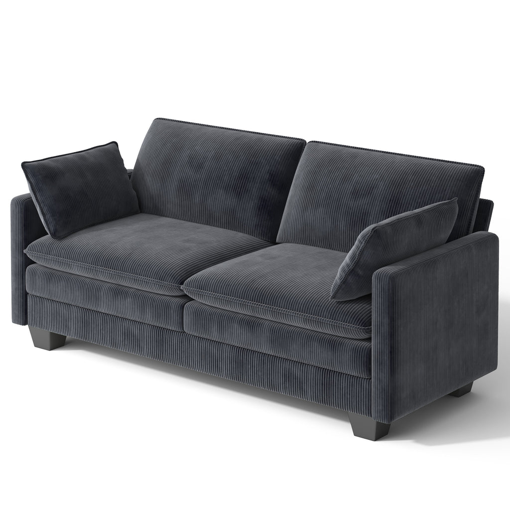 74.8" Sofa for Living Room, Cloud Couch with Deep Seat & Corduroy Fabric, Small Loveseat for Bedroom/Office, Dark Gray
