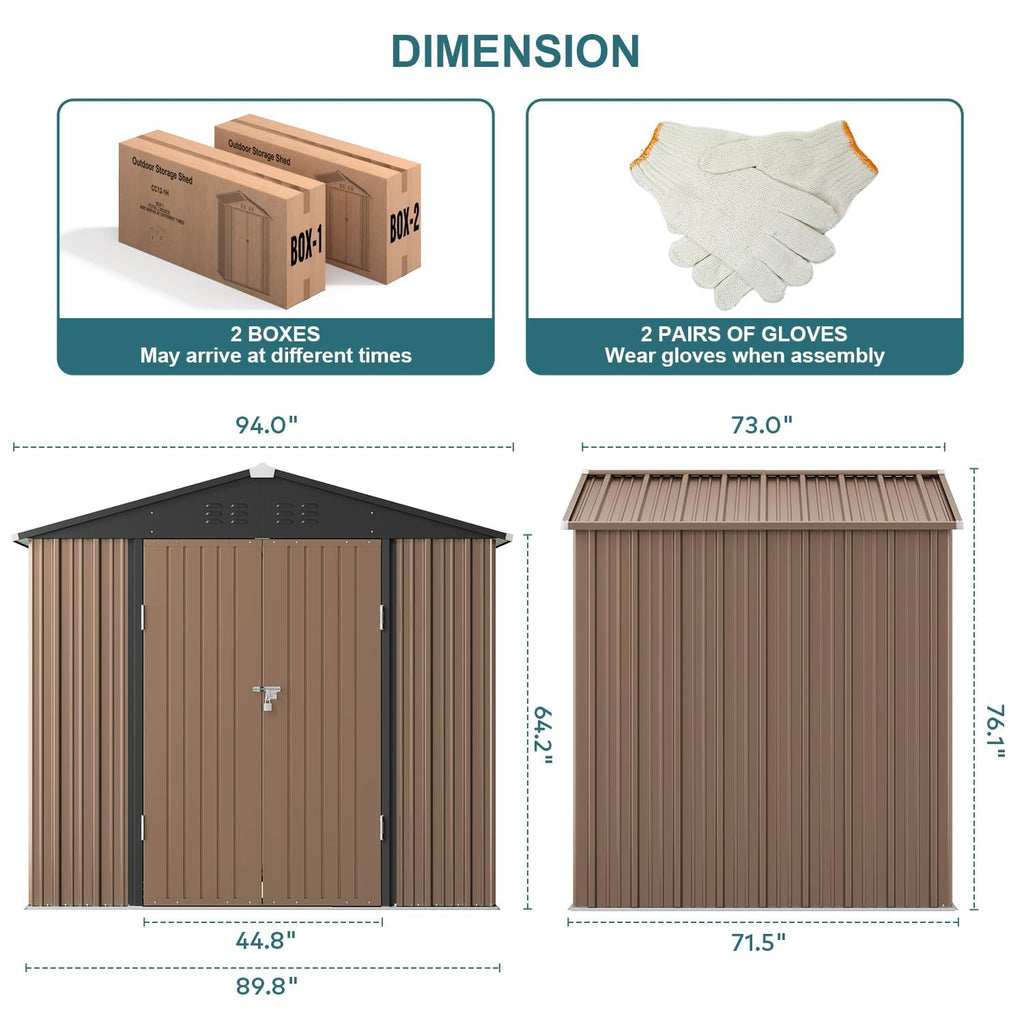 Choose the outdoor storage shed to transform your outdoor space into an organized haven while keeping your belongings secure, protected, and easily accessible. With ample dimensions, this outdoor shed provides generous storage space for a wide range of items. From snow blowers and lawnmowers to outdoor chairs, bikes and grills, it effortlessly accommodates your belongings. Available in gray, green and light brown each colour you can choose what you like. Each part is labeled in detail, so you can follow the instructions to clearly guide the installation steps. If you have any questions, please feel free to contact us. Our professional team is always online. NOTE: THE PRODUCT WAS DELIVERED IN TWO PACKAGES