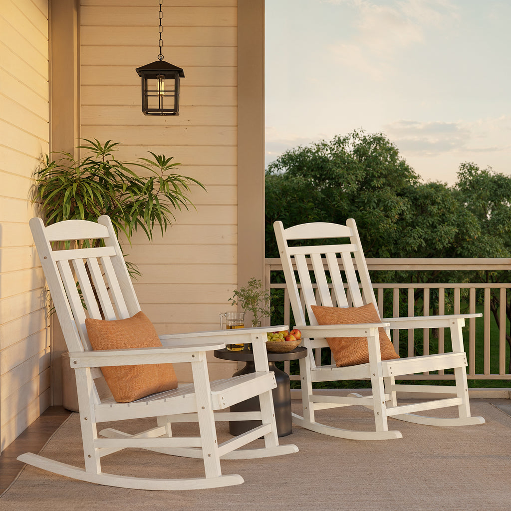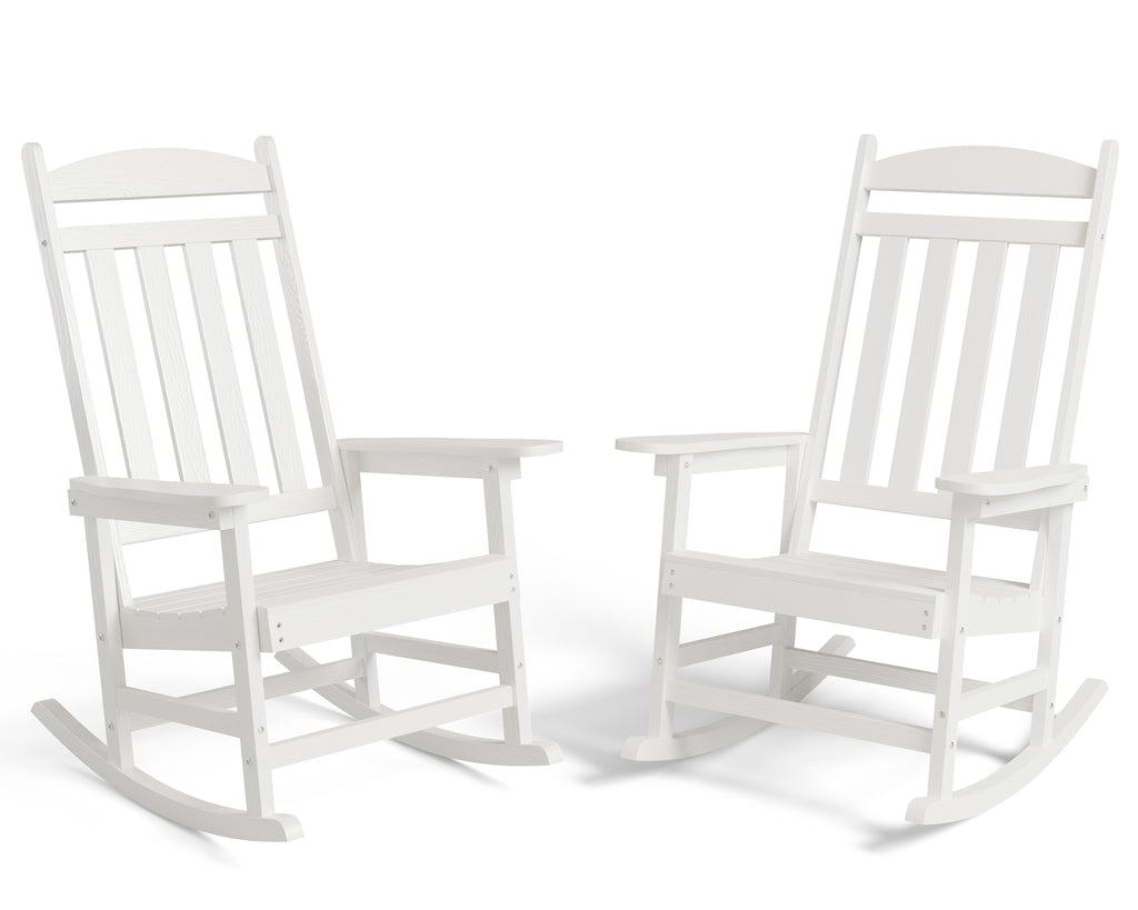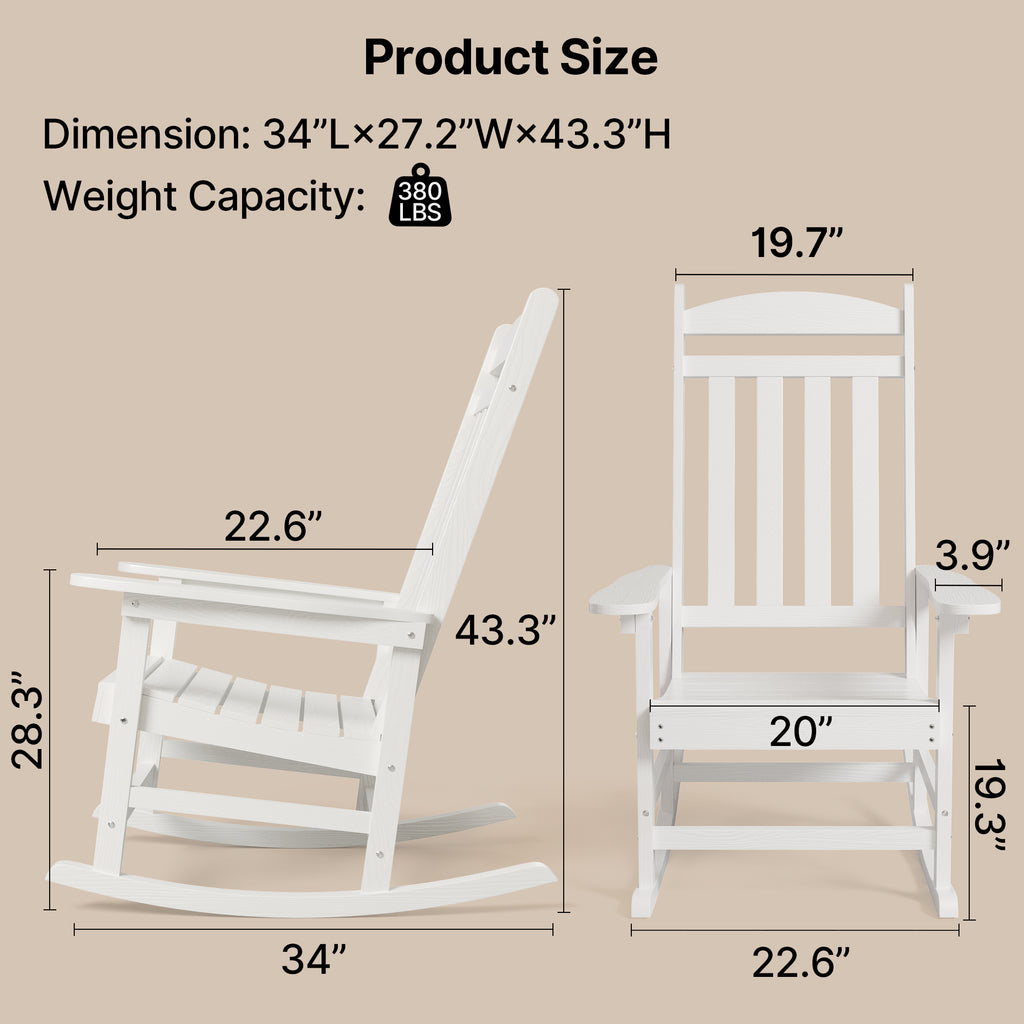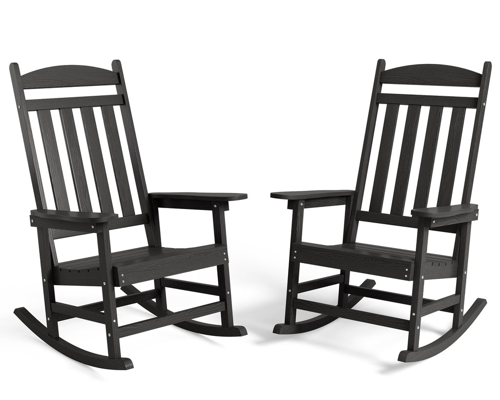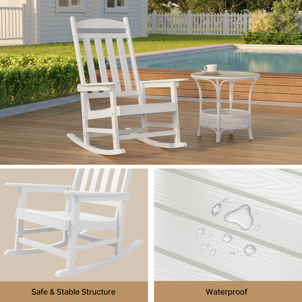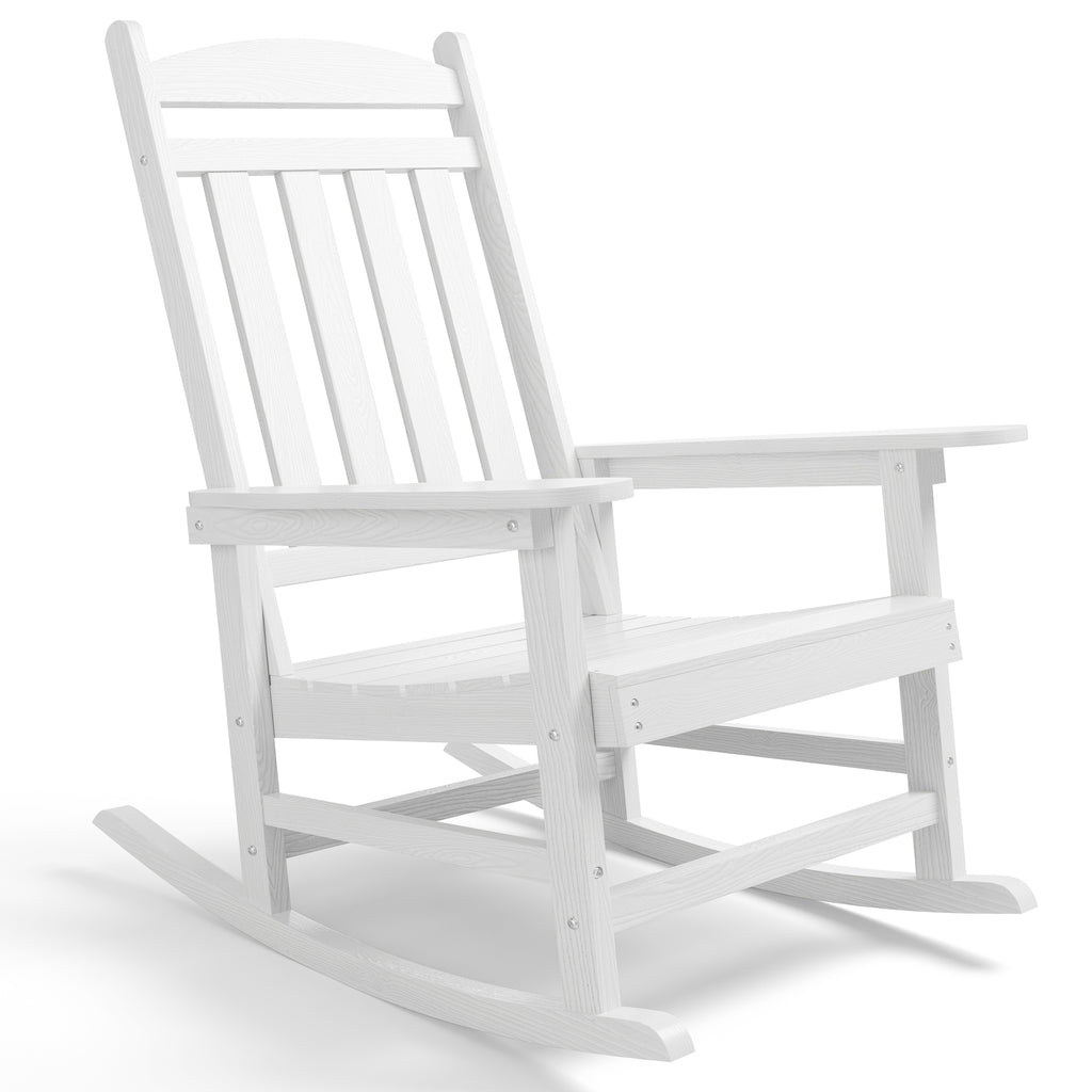 Crafted from upgraded composite HIPS material, this chair outperforms wooden models—resistant to water, weather, fading, splintering, and rot. Its robust rocking legs ensure stable motion and long-term durability for worry-free use.