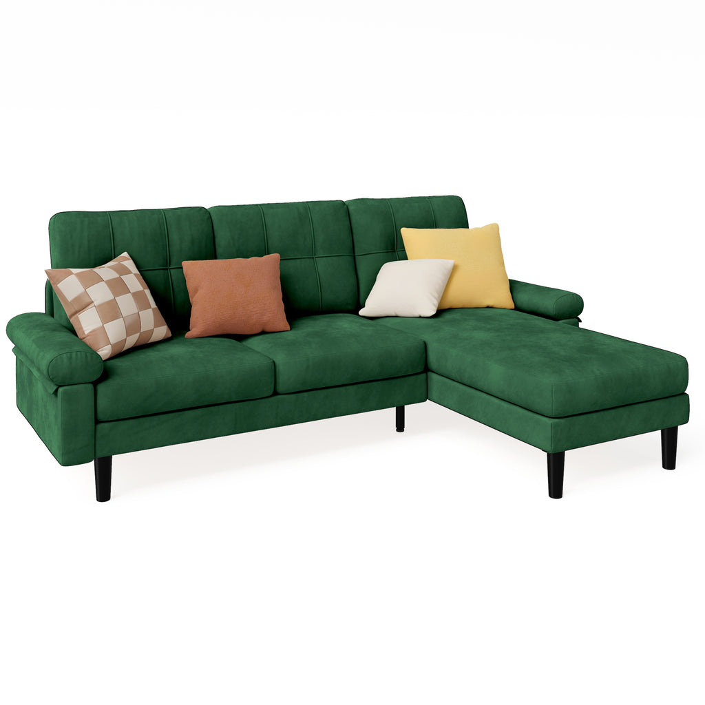📺【Soft Velvet Fabric】Crafted with plush velvet upholstery, the sofa offers a cloud-like touch, blending soft comfort with elegant aesthetics. Thick padded armrests double as pillows, enhancing the cozy experience for lounging or napping.