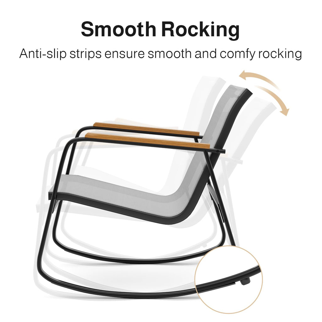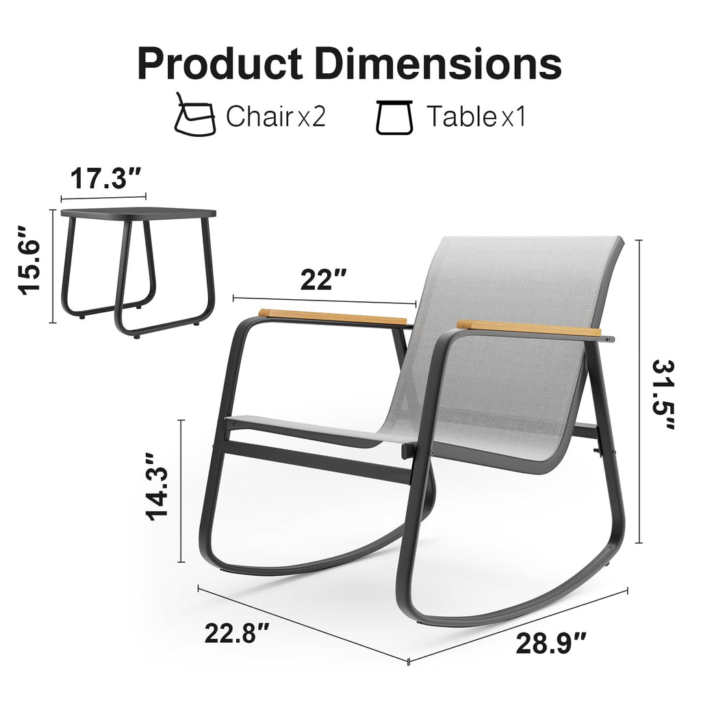 Aiho 3 Piece Outdoor Rocking Bistro Set, Textilene Fabric Small Patio Furniture Set, Front Porch Rocker Chairs Conversation Set with Table for Lawn, Garden, Balcony, Poolside -Gray