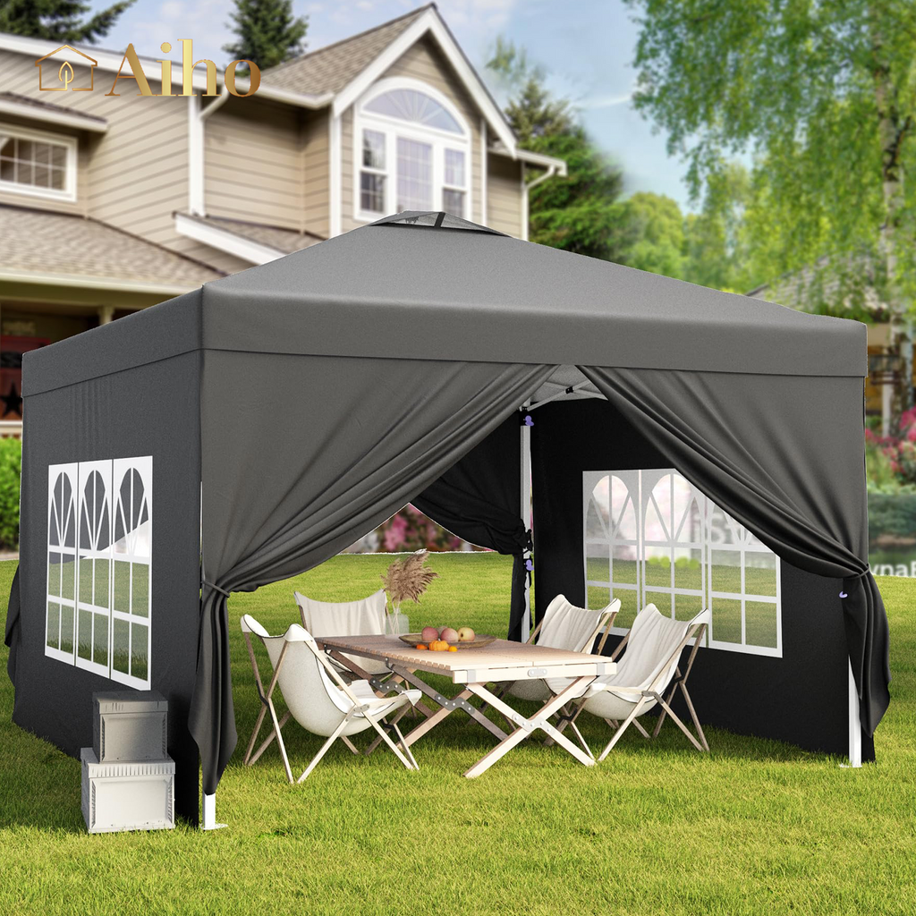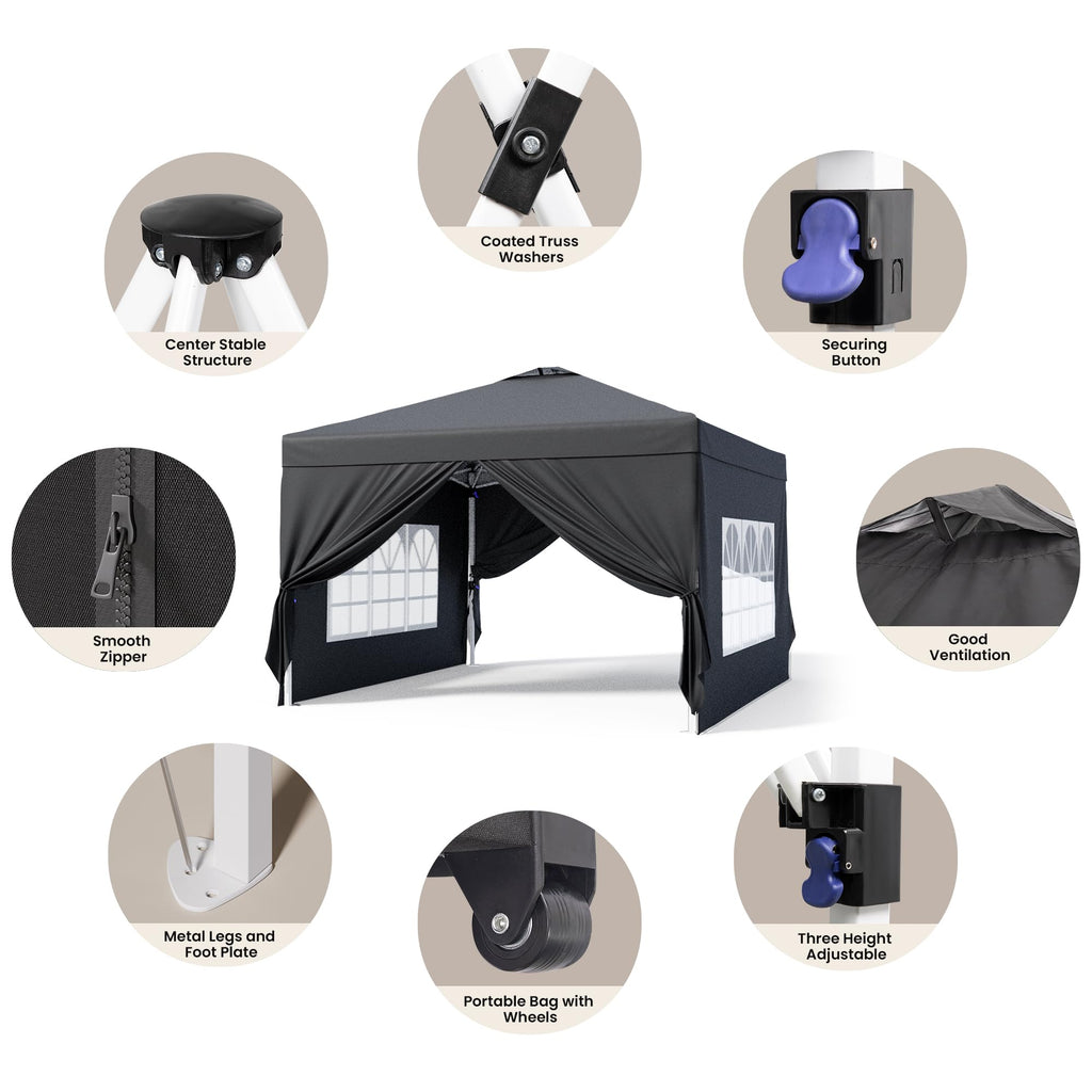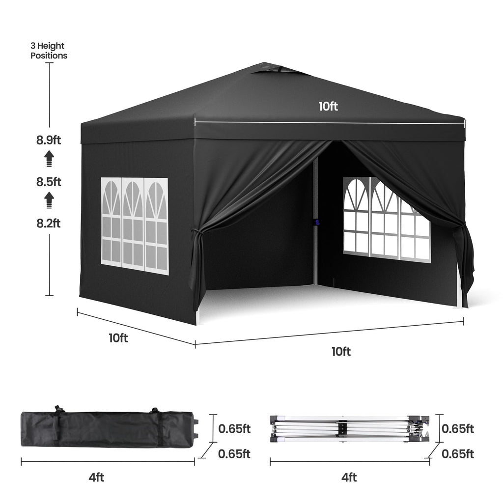 Aiho Easy up Canopy 10x10 with Removable Sidewalls, All-Weather Portable Popup Shade Canopy with 3 Adjustable Height, For Garden, Backyard, Beach, Camping and Party-Black