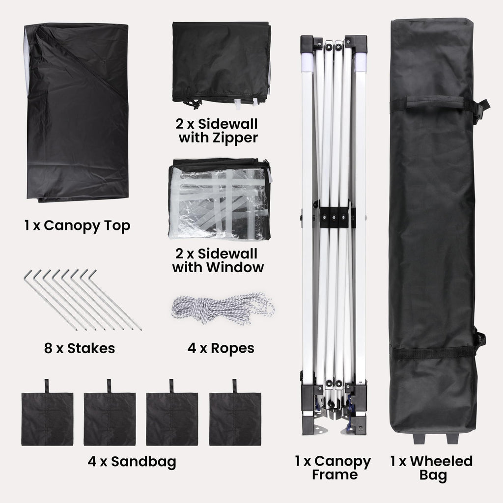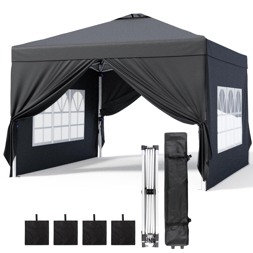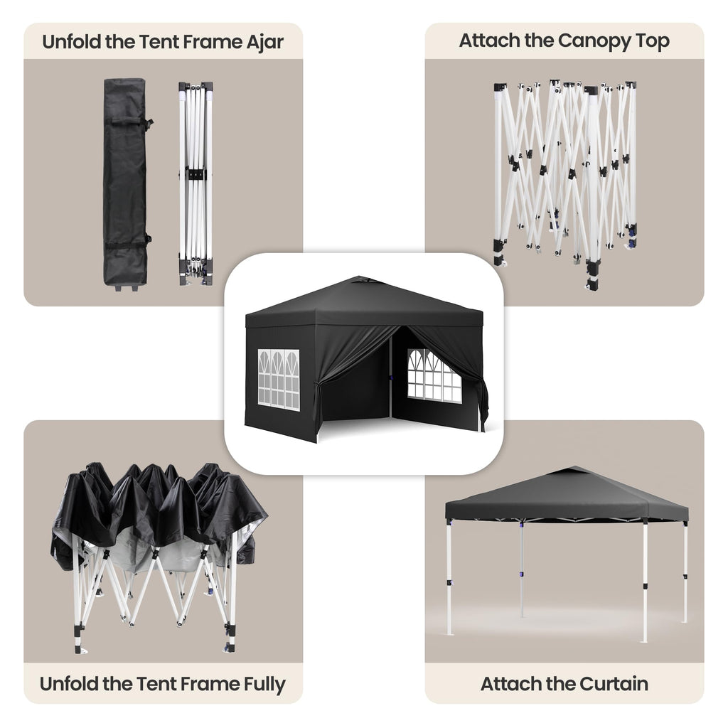 Aiho Easy up Canopy 10x10 with Removable Sidewalls, All-Weather Portable Popup Shade Canopy with 3 Adjustable Height, For Garden, Backyard, Beach, Camping and Party-Black