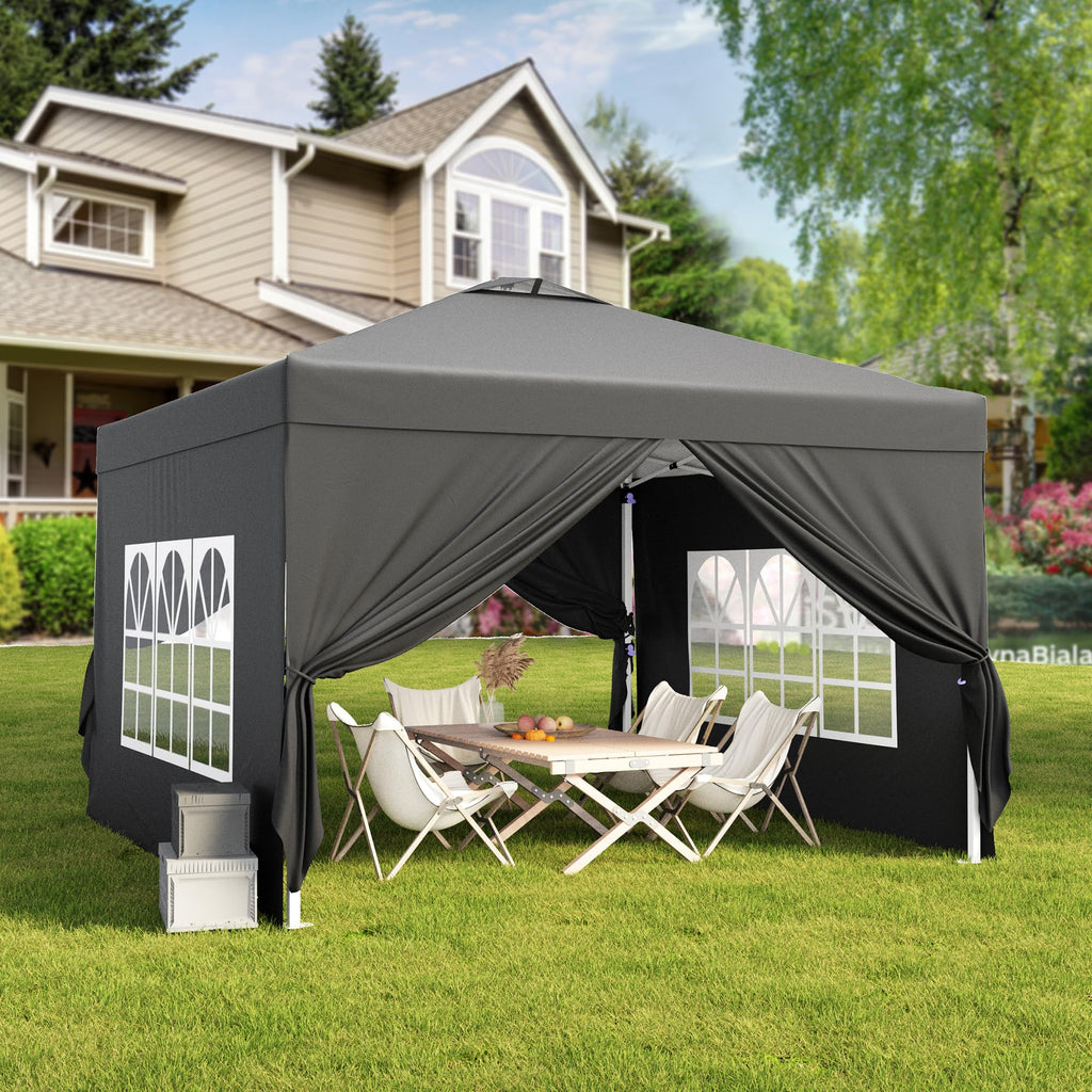 Transform your living space, bring home comfort and style with our outdoor tent. Designed for convenience and durability, this beach tent features detachable sidewalls and superior weather protection—perfect for camping, backyard parties, beach days, and more. With easy setup and rugged construction, it’s your ultimate companion for all seasons. The 10x10 canopy is crafted with reinforced frames and high-quality fabric, blocks harmful UV rays and keeps you dry during unexpected rain. The removable walls in the popup gazebo offer flexible enclosure options, while the portable design with a wheeled bag makes transportation a breeze