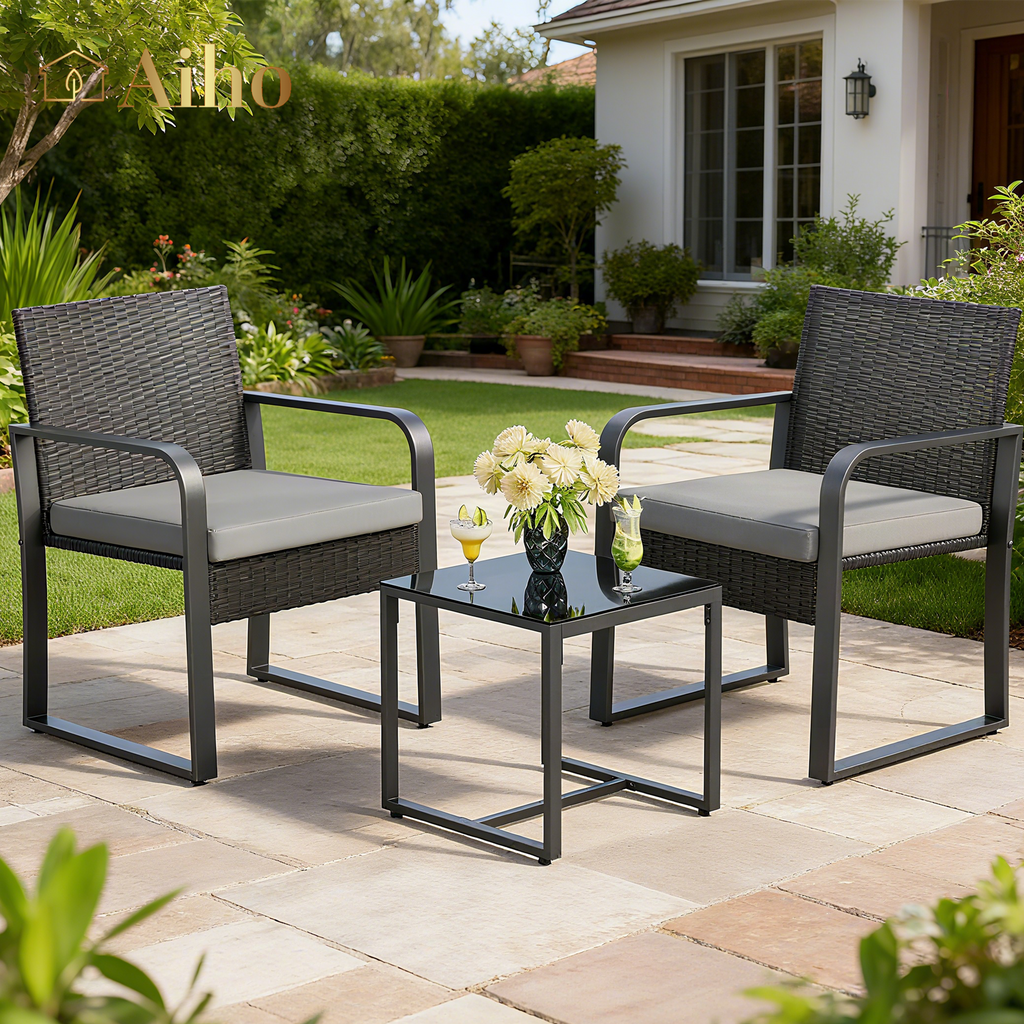 Create the perfect outdoor retreat with our versatile Aiho 3-piece patio set! ☀️ this stylish balcony furniture set includes one elegant table and two comfortable chairs — perfect for transforming your balcony, patio, backyard, or pool area into a cozy haven. Designed with durability and comfort in mind, this outdoor furniture set combines modern aesthetics with rugged construction to handle sun, rain, and everyday use. Whether you're sipping coffee in the morning or hosting a small gathering at dusk, this outdoor table and chairs offers the ideal spot to unwind and enjoy the fresh air. 🪑✨