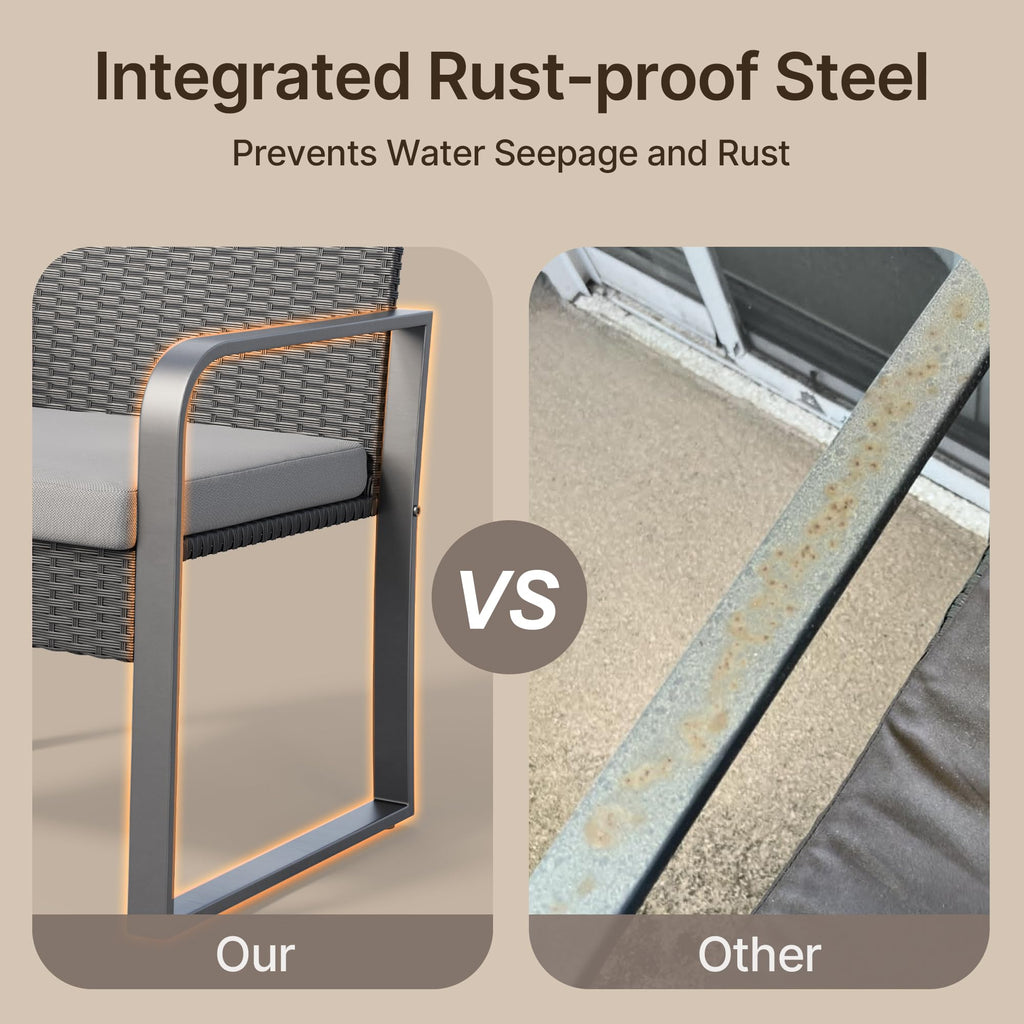 Aiho 3 Pieces Outdoor Bistro Set with Glass Table, Patio Rattan Furniture Set with Soft Cushions for Balcony, Backyard, Garden, Pool, Gray