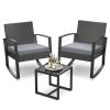 Aiho 3 Pieces Outdoor Furniture Set, Outdoor Wicker Bistro Set with Soft Cushions and Glass Table for Yard, Garden, Pool, Balcony, Gray