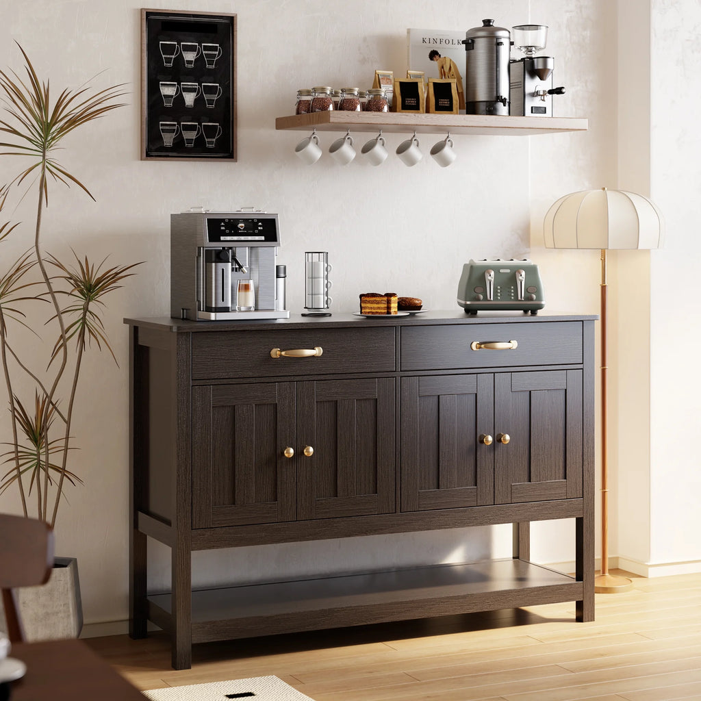 Aiho 47” Modern Farmhouse Buffet Sideboard Cabinet with 2 Drawers & Doors, Multi-Functional Coffee Bar & Entryway Table with Shelf for Living Room, Hallway Storage, Dark Brown