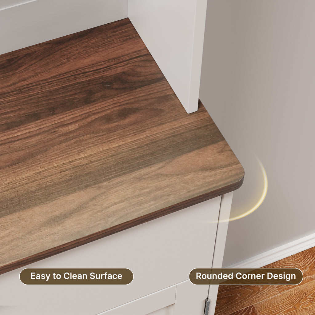This Aiho 70.9-inch tall Farmhouse Style Kitchen Storage Cabinet has a stylish and functional design that is perfect for the dining room, living room or kitchen. It comes with 4 large doors that provide ample storage space for easy organization of dishes, food or miscellaneous items. It also features a wide drawer for convenient storage of utensils and small items. The cabinet is equipped with an internal LED light for bright illumination, making it easy to use at night. It is also equipped with a charging station, convenient for connecting the use of electrical appliances to meet the various needs of modern families. The overall shape is elegant, which is practical and adds a cozy home atmosphere.