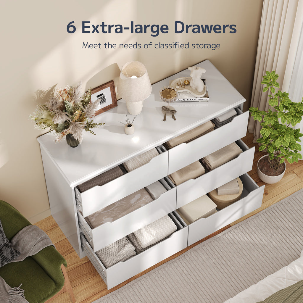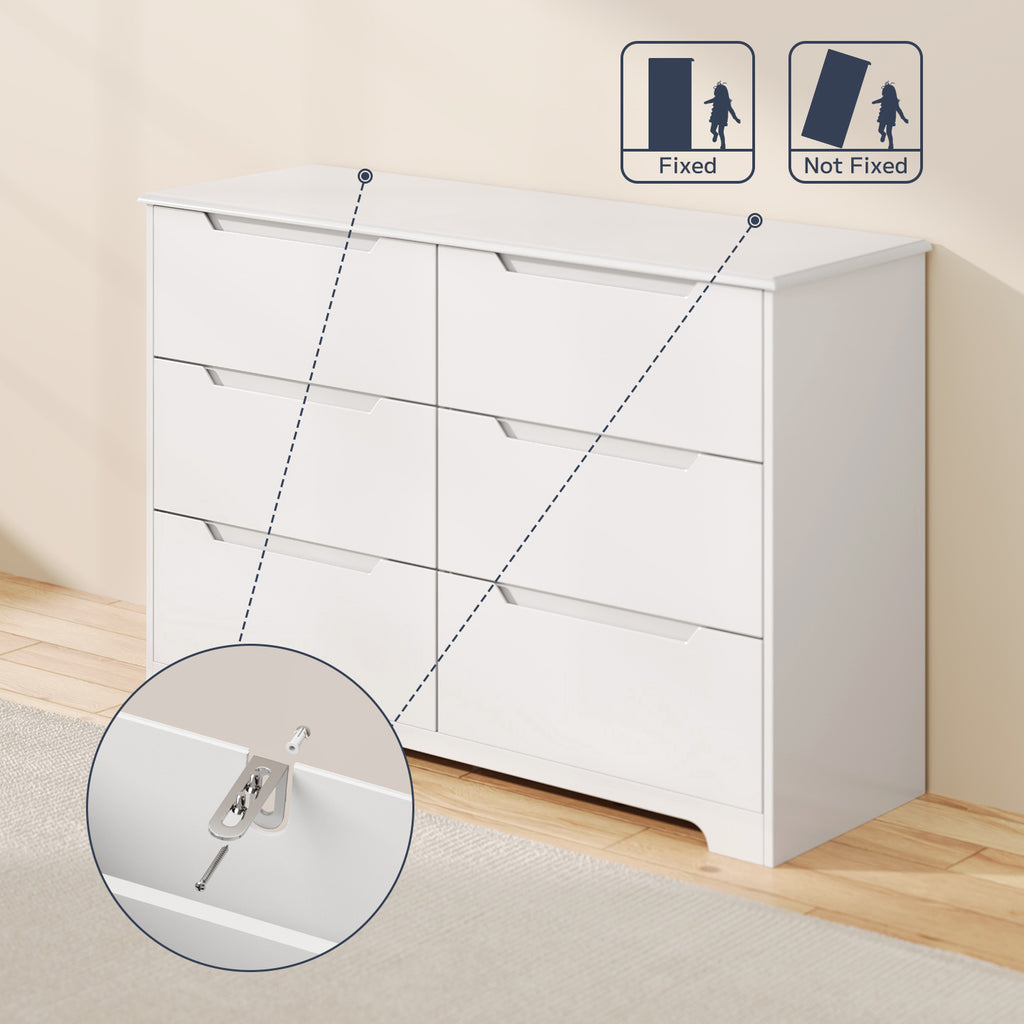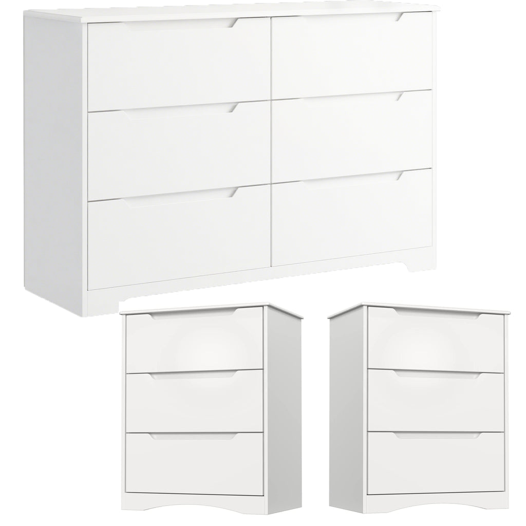 Asofer 3 Piece Bedroom Dresser and Nightstand Set, 6 Drawer Dresser & 3 Drawers Nightstand Set of 2, White
