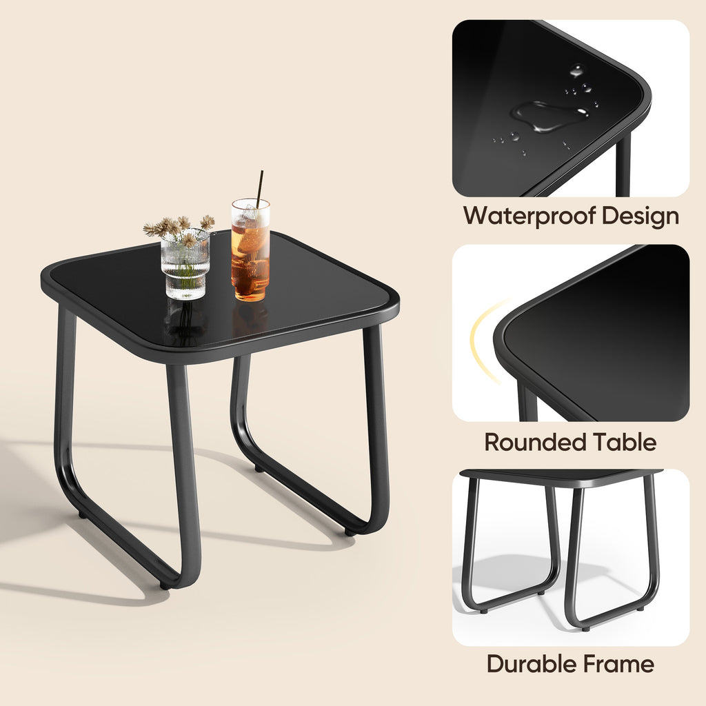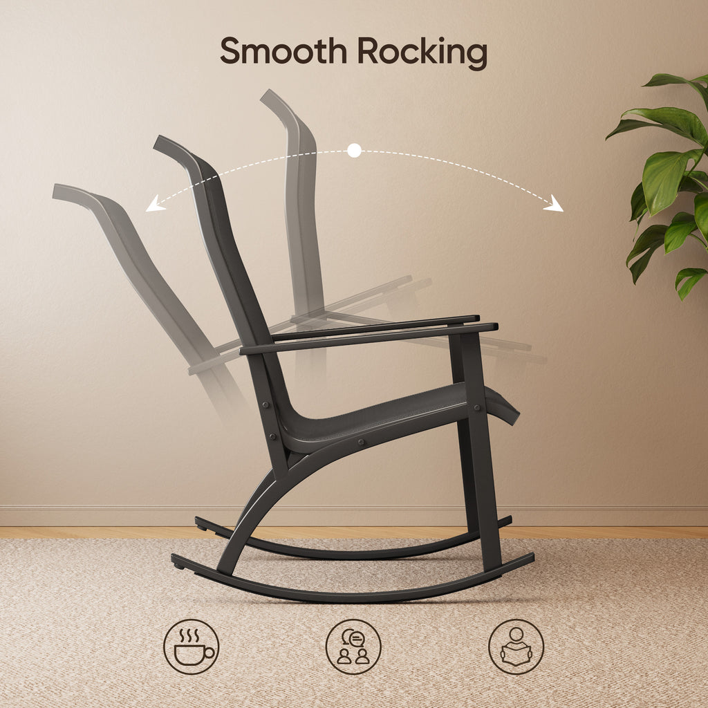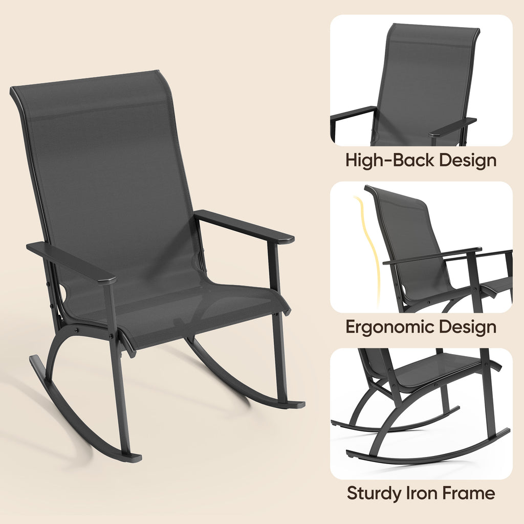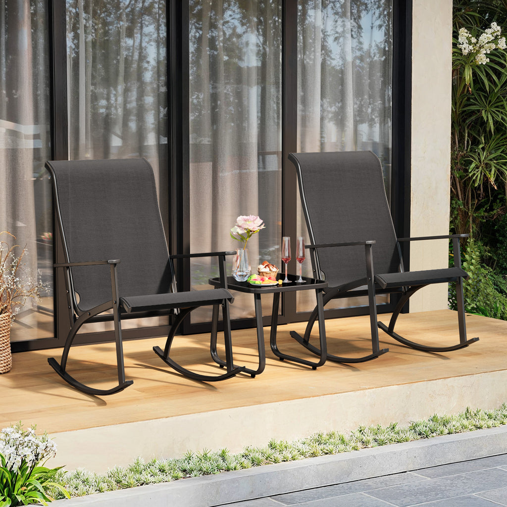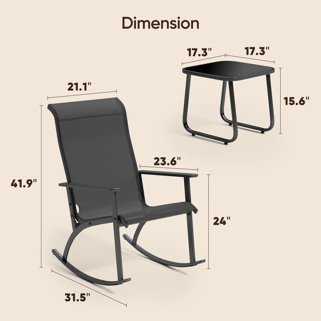 Asofer 3-Piece Outdoor Rocking Bistro Set with Heightened backrest, Patio Furniture Set with Glass Table for Poolside, Porch, Lawn, Black