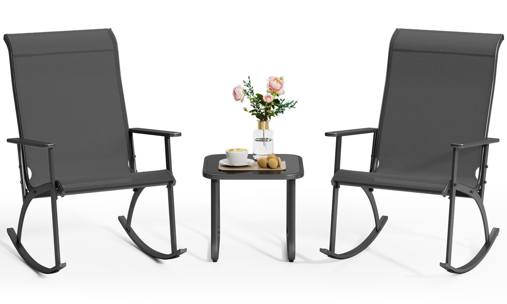 Asofer 3-Piece Outdoor Rocking Bistro Set, Patio Furniture Set with Glass Table for Poolside, Porch, Lawn