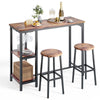 Asofer 3-Piece Retro Bar Table and Chairs Set, Small Dining Set for 2 with Storage, Suitable for Kitchen, Living Room, Patio, Perfect Christmas Gift,Brown