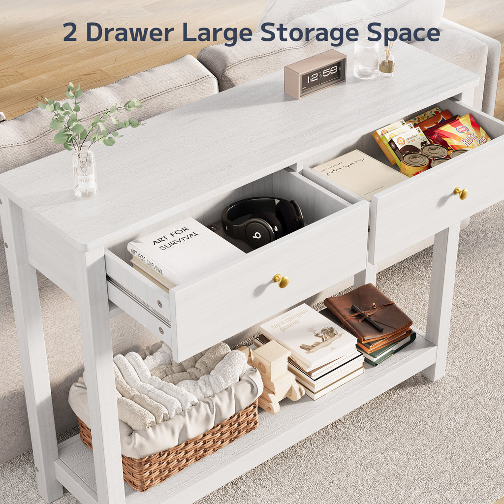 <p>💐<strong>【Concealed Storage】</strong>This console table with two large drawers offers concealed storage for everyday clutter, making your space look organized. The drawers are designed to stay securely in place even when fully opened. Plus, you can purchase two hallway tables for extra storage space.</p>