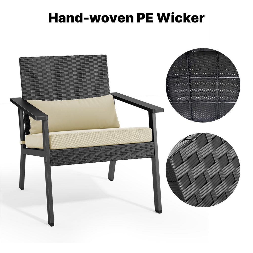 Asofer 4-PCS Outdoor Patio Furniture Set, Wicker Conversation Set with Table & Cushion