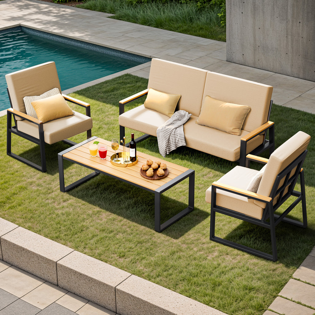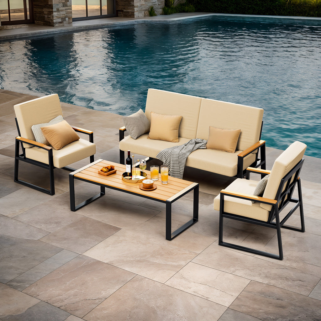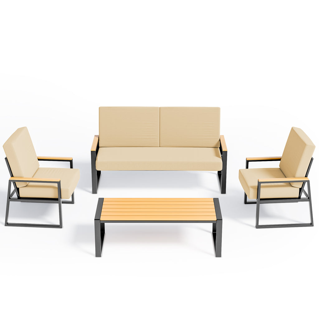 Asofer 4-PCS Patio Furniture Set, Outdoor Conversation Set for lawn, Yard, Poolside, Beige