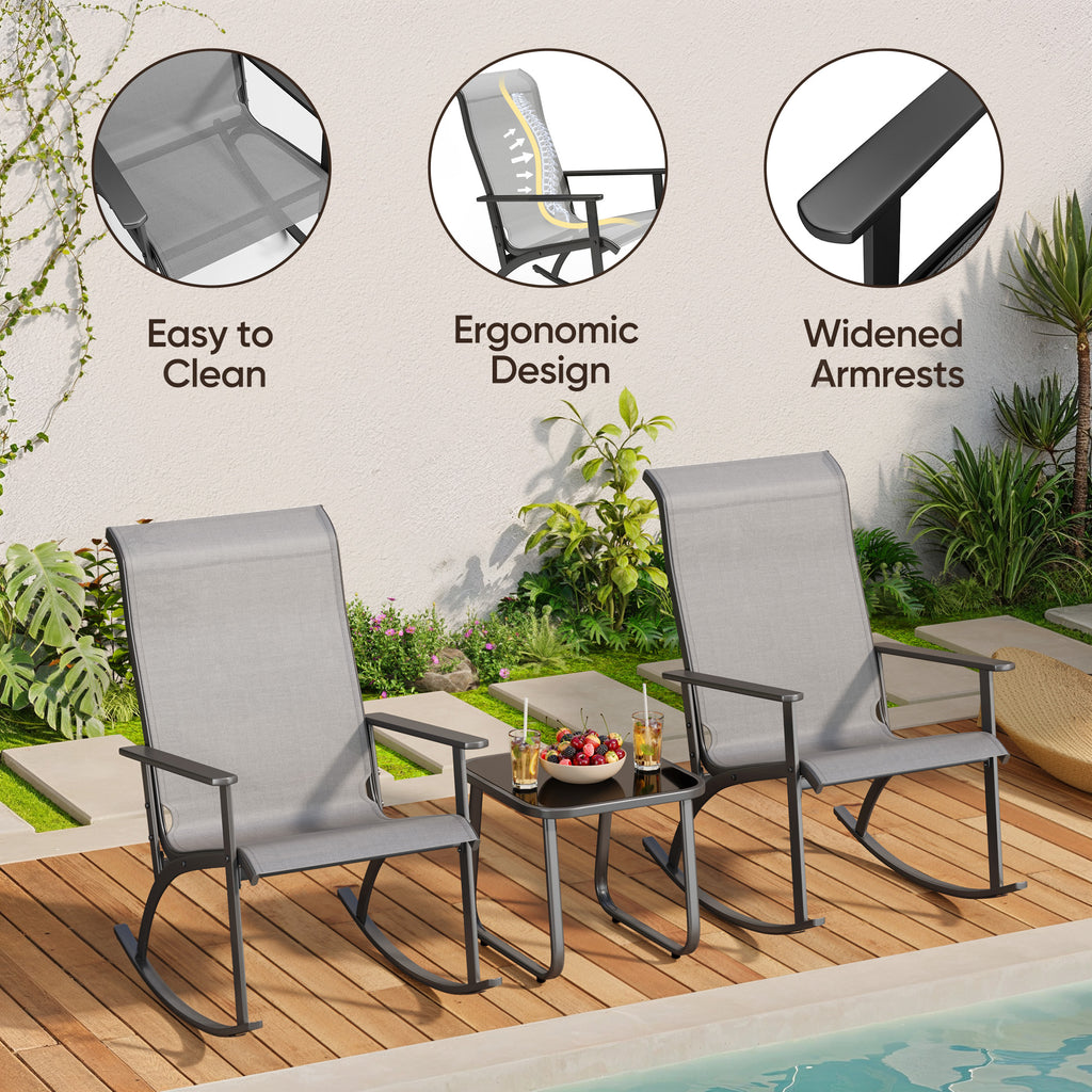 Asofer 3 Pieces Rocking Patio Furniture Set,Outdoor Balcony Furniture with 2 Sponge Rocking Chairs and 1 Steel Coffee Table for Garden,Lawn,Room,Corridor