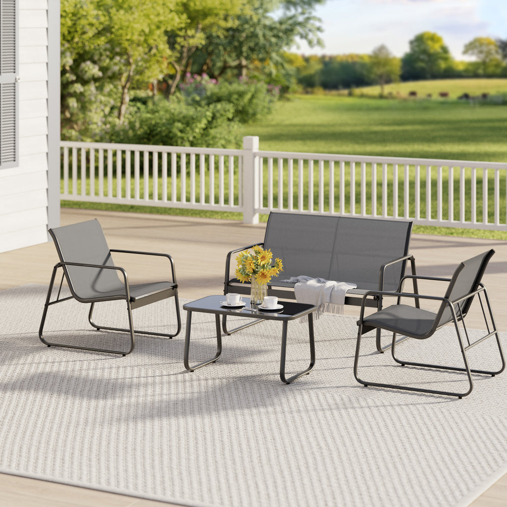 Asofer 4 Pieces Patio Furniture Set with Glass Table