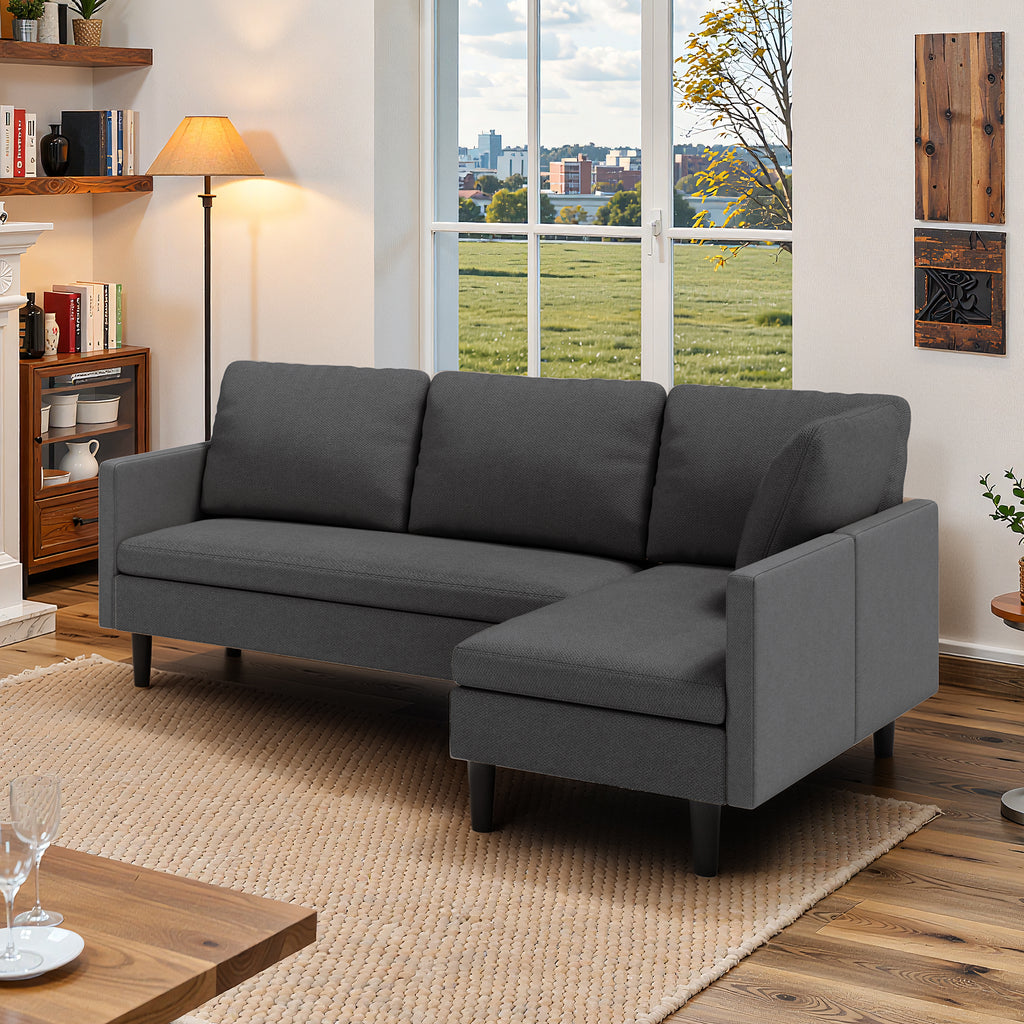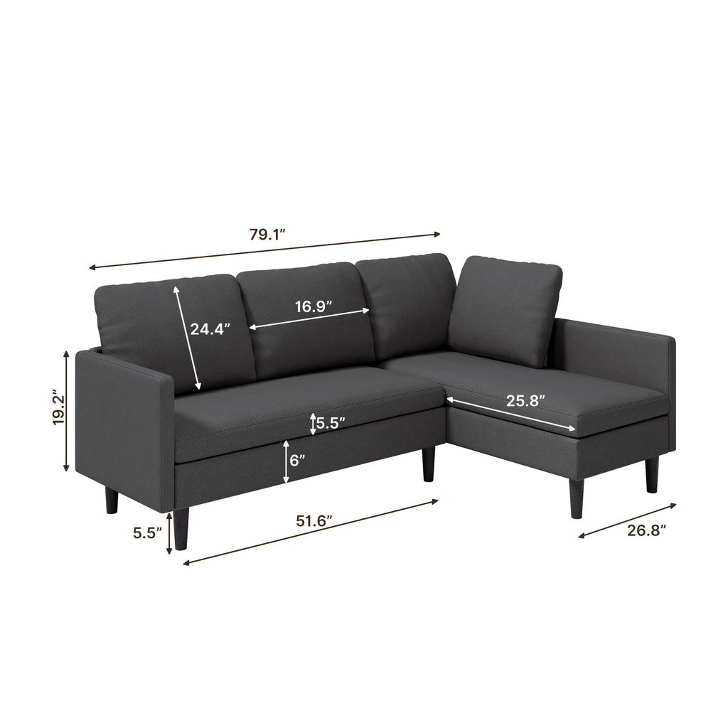 Asofer 4-Seat Sectional Sofa, Convertible Sofa Bed with Comfy Seat Cushion, for Living Room, Apartments, Office, Gray
