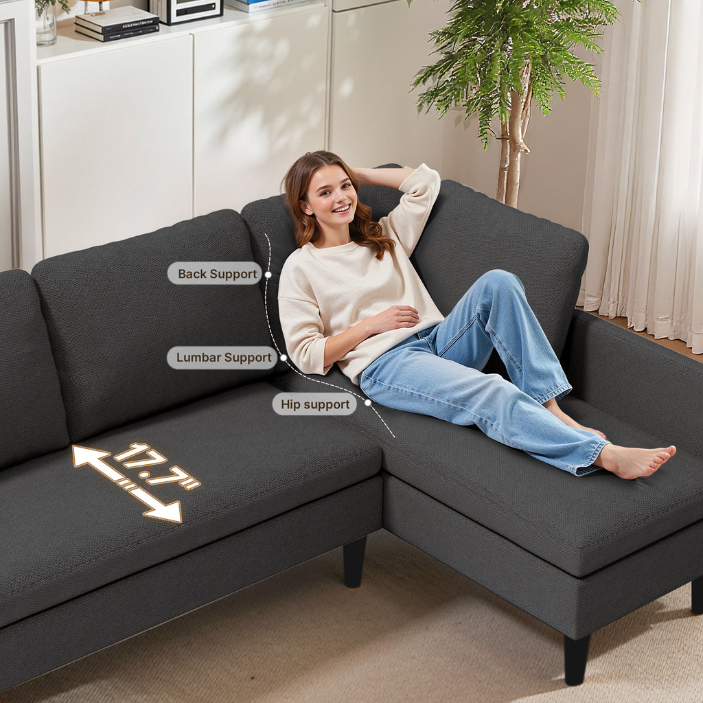 [Deep Seating + 4 Plush Pillows]With a generous seat depth of 17.7″ and high-density cushioned padding, this sofa offers exceptional support. Includes four soft, movable pillows to provide extra comfort for your back, arms, and neck — ideal for sitting, leaning, or lying down.