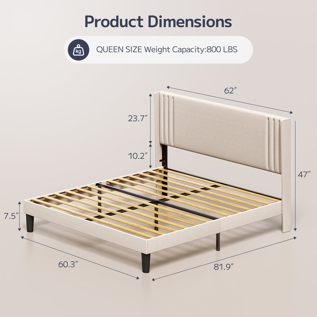 Wingback Bed Frame | Beige | 81.9" L x 60.3" W x 47" H | Supports 8-12" mattress |