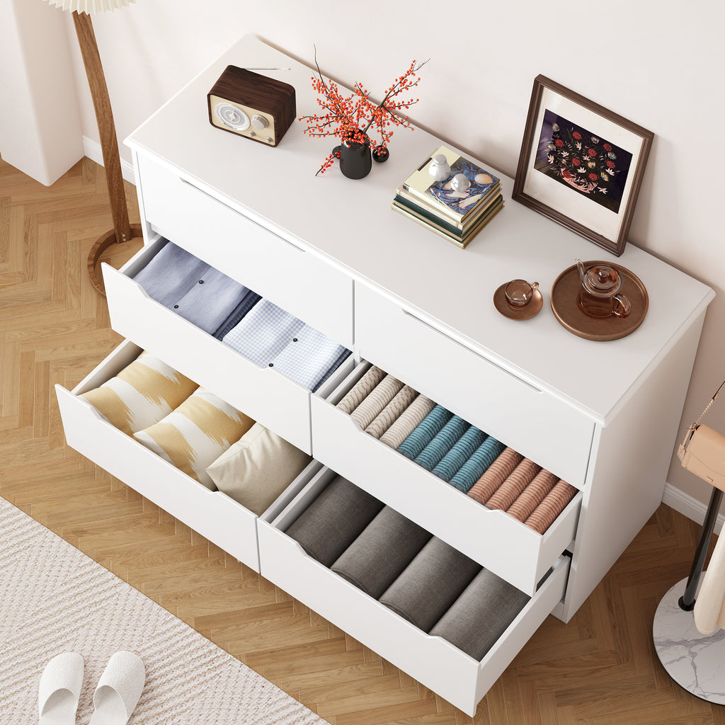 6-Drawer Wide Dresser | White | 47.3"D x 15.7"W x 31.5"H | Perfect for placing a TV on top |