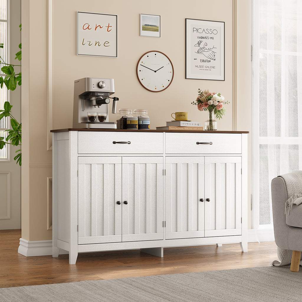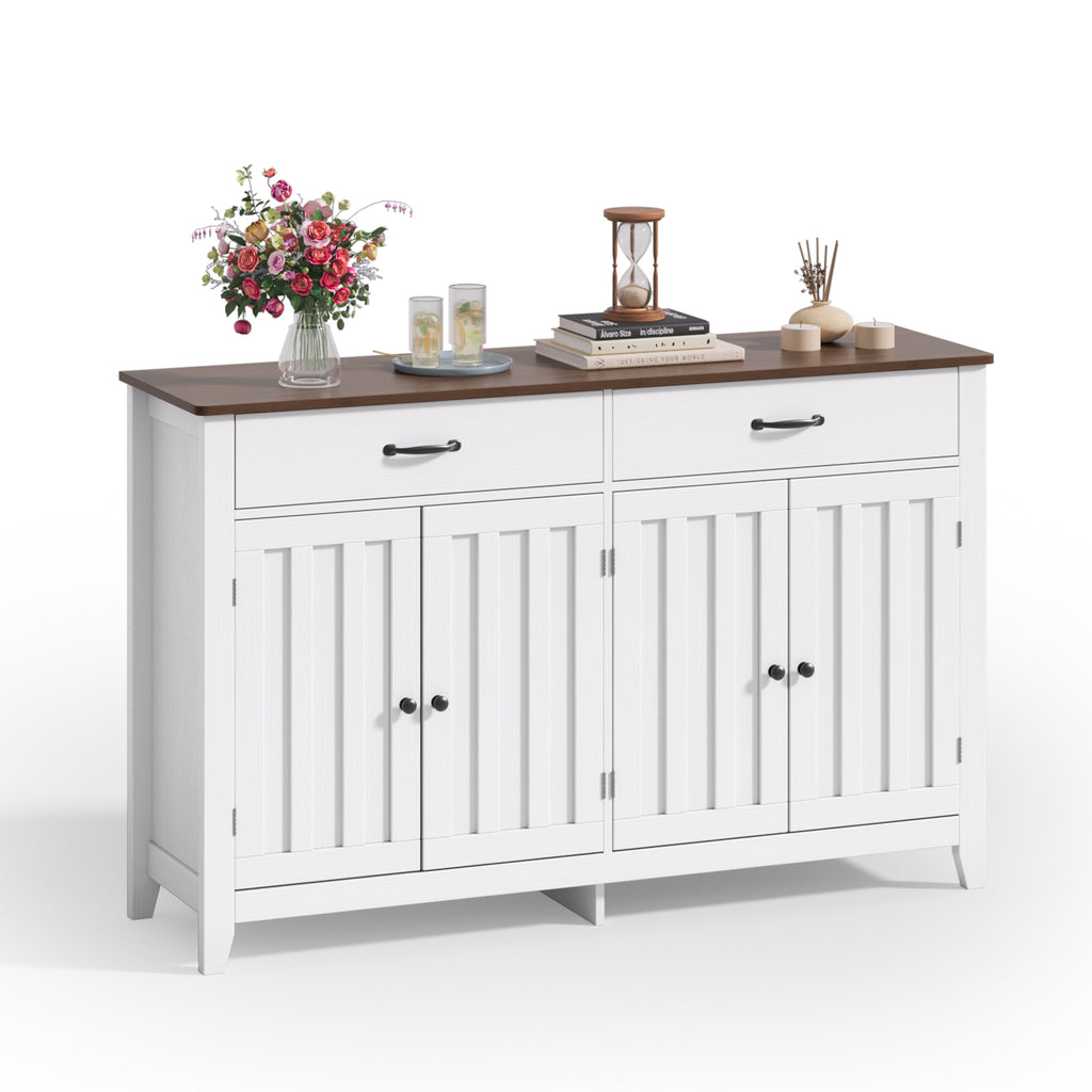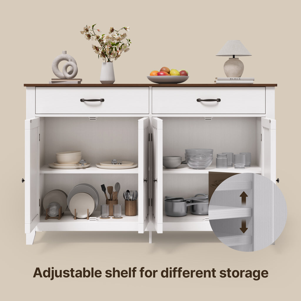 Asofer 55" Sideboard Buffet Cabinet with 4 Door 2 Drawer, Wood Storage Cabinet with Adjustable Shelves for Kitchen Dining Room, Retro