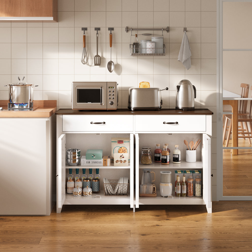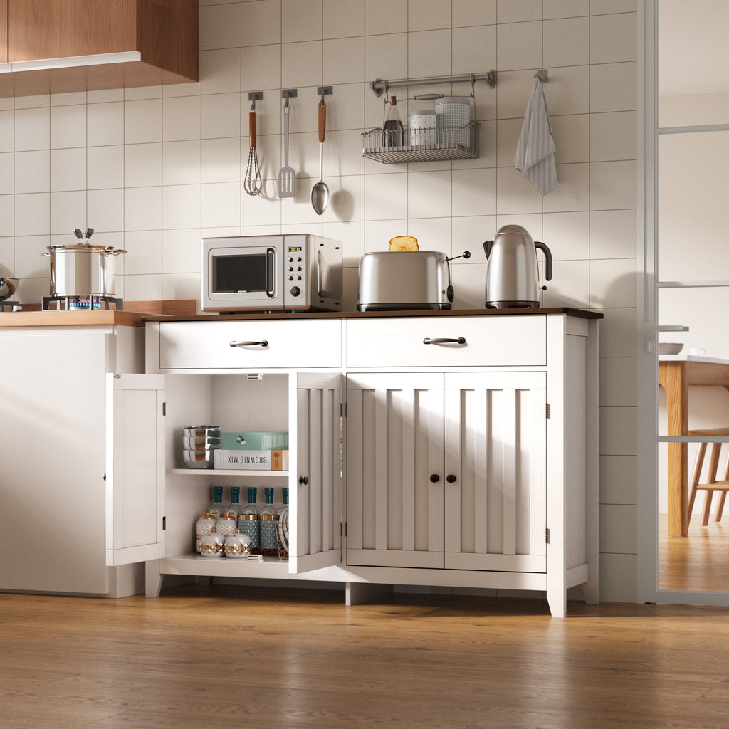 Asofer 4-Door 2-Drawer Farmhouse Storage Cabinet, Wood Sideboard with Adjustable Shelves for Kitchen Dining Room