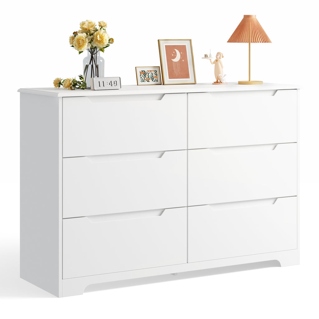 Asofer 6 Drawer Double White Dresser with Cutout Handle, Chest of Drawers for Bedroom, Nursery, White