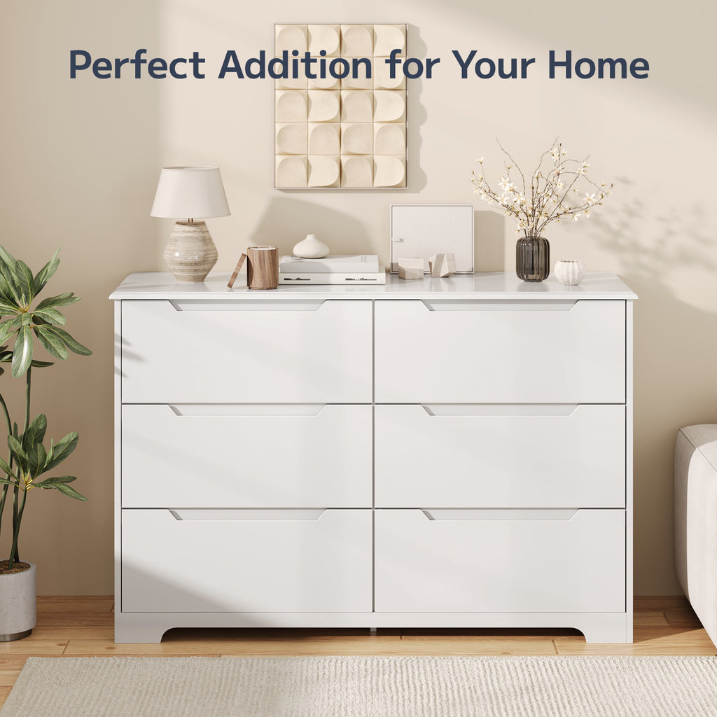 Asofer 6-Drawer Stable Dresser with Cutout Handle,Chest of Drawers for Bedroom, Living Room, Hallway, Entryway,White
